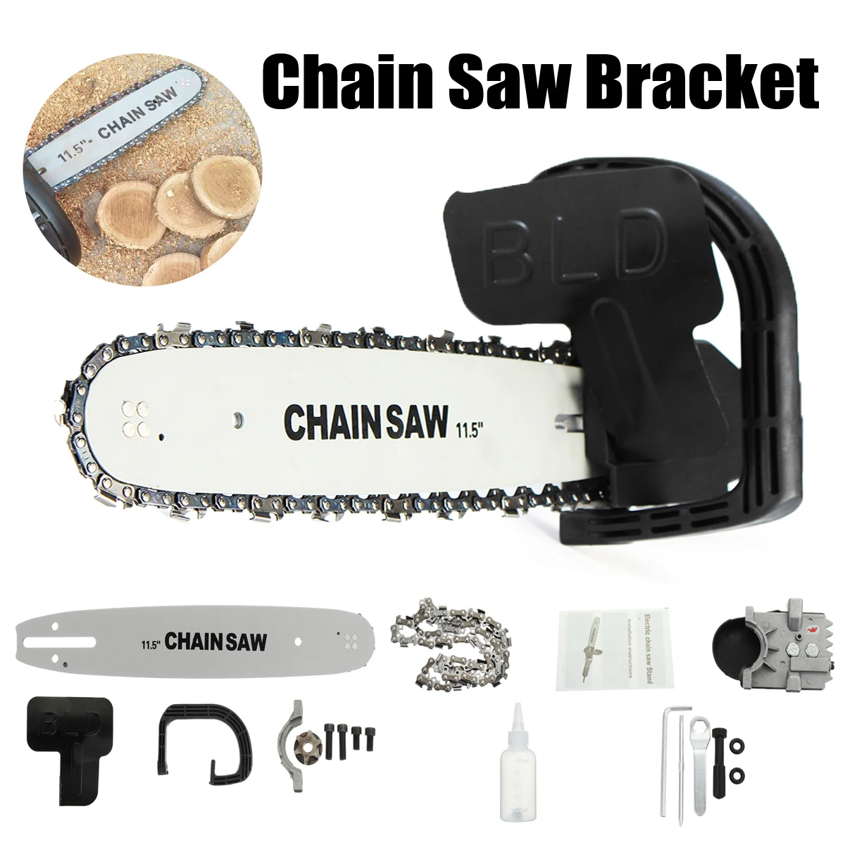 This Chain Saw Bracket Set uses the 100 angle grinder and the grinder is not included in this package,pls understand.