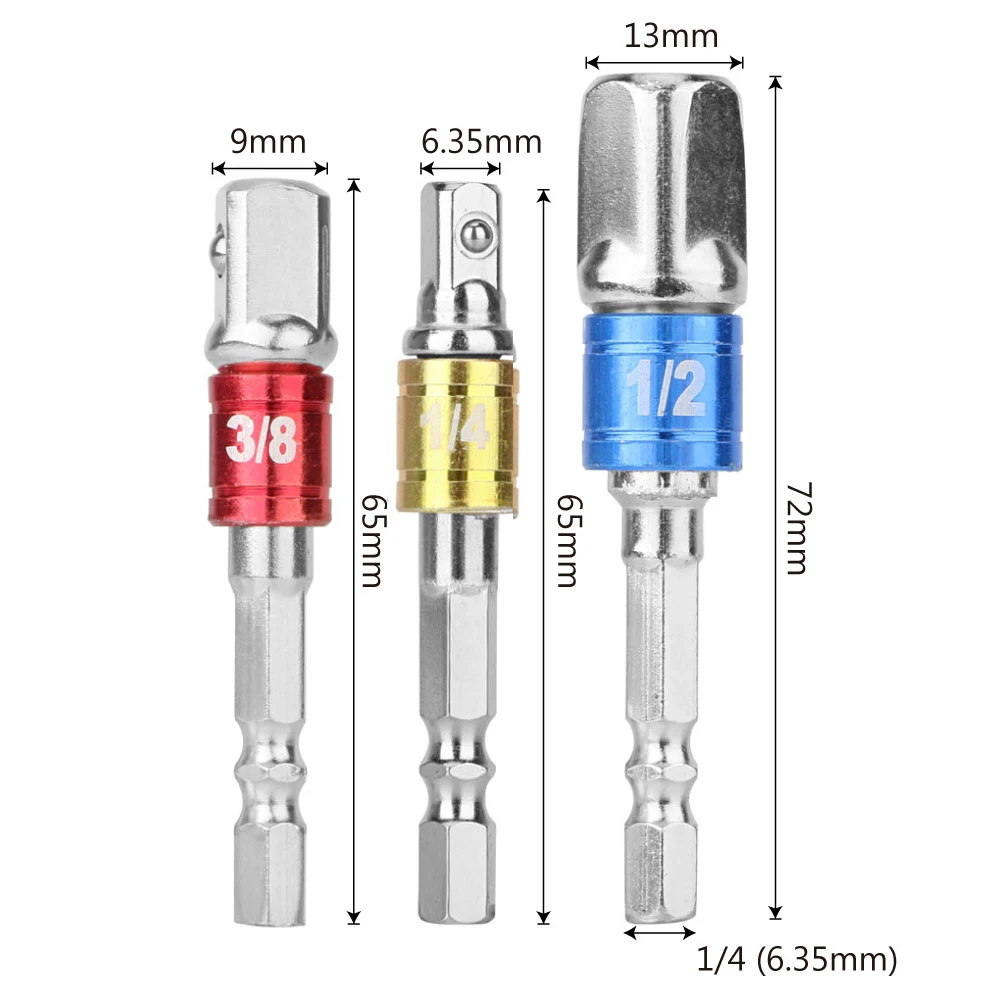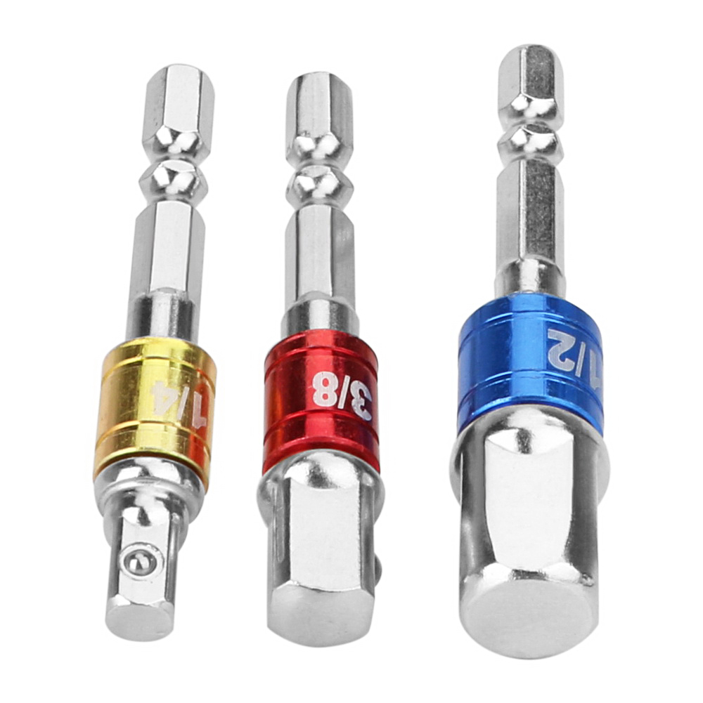 - Socket Bit Adapter Drill Nut Driver Power Extension Bar 3pc Set 1/4″ 3/8″ 1/2″