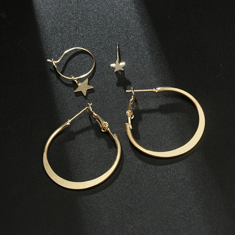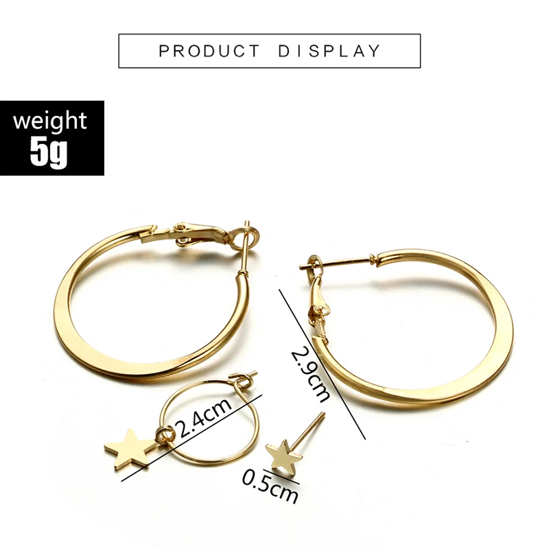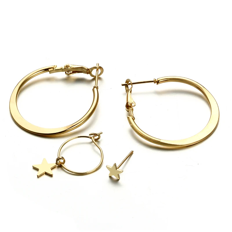 docona Punk Gold Color Round Star Stud Earring Set for Women Simple Geometric Studs Earrings Party Jewelry Oorbellen 6546