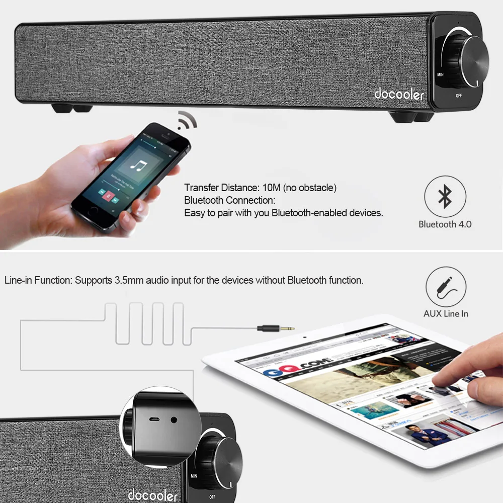 Docooler Bluetooth 4.0 Speakers Sound Bar Home Theater 20W Dual 10W Drivers Deep Bass Music Play for TV PC Tablets Smart Phones