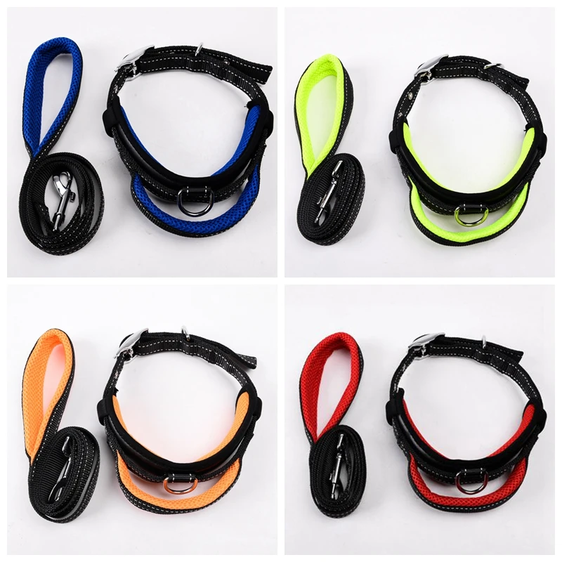 Dog Collar Leash Set Mesh Breathable Adjustable Collars S/M/L Nylon High quality strong handle traction Leash Dogs accessories
