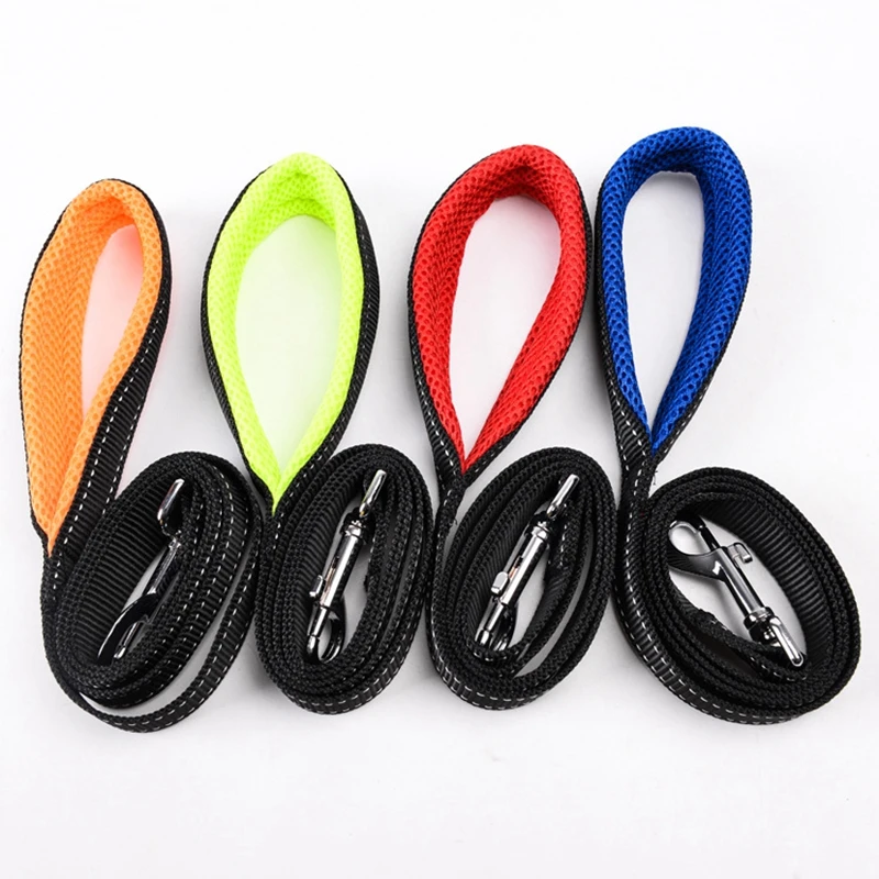 Dog leash nylon Mesh handle traction Leather dog collars S/M/L adjustable Strong safe traction leash 4 colors dog accessories.