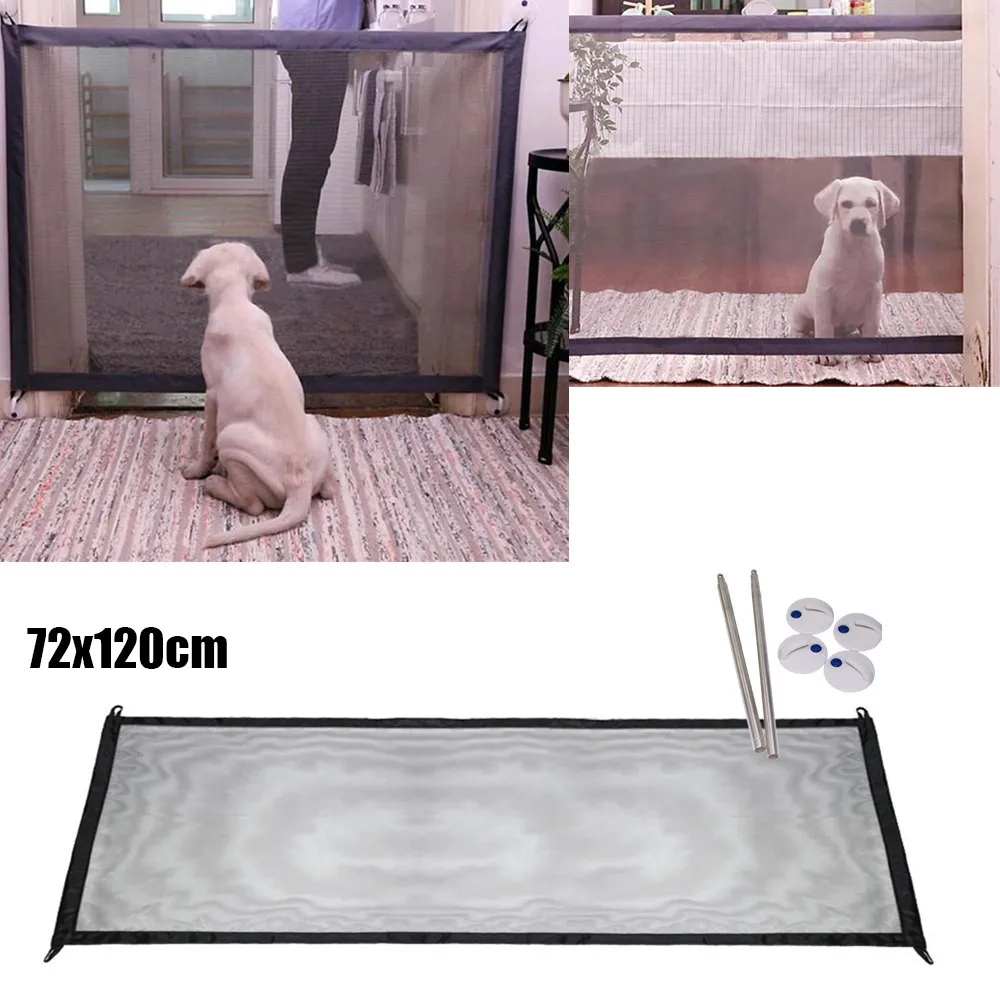 Dog Fence Home Door Gauze Magic Gate Portable Folding Safety Guard For Pets Dog Cat Isolated Gauze 72x120cm Dog Supplies