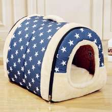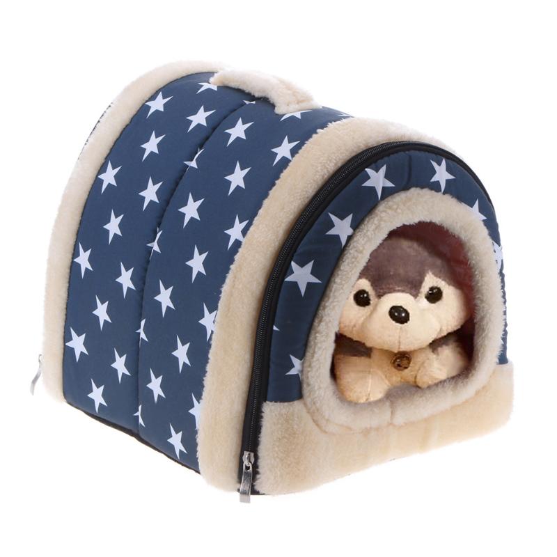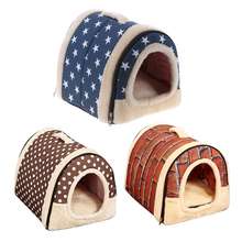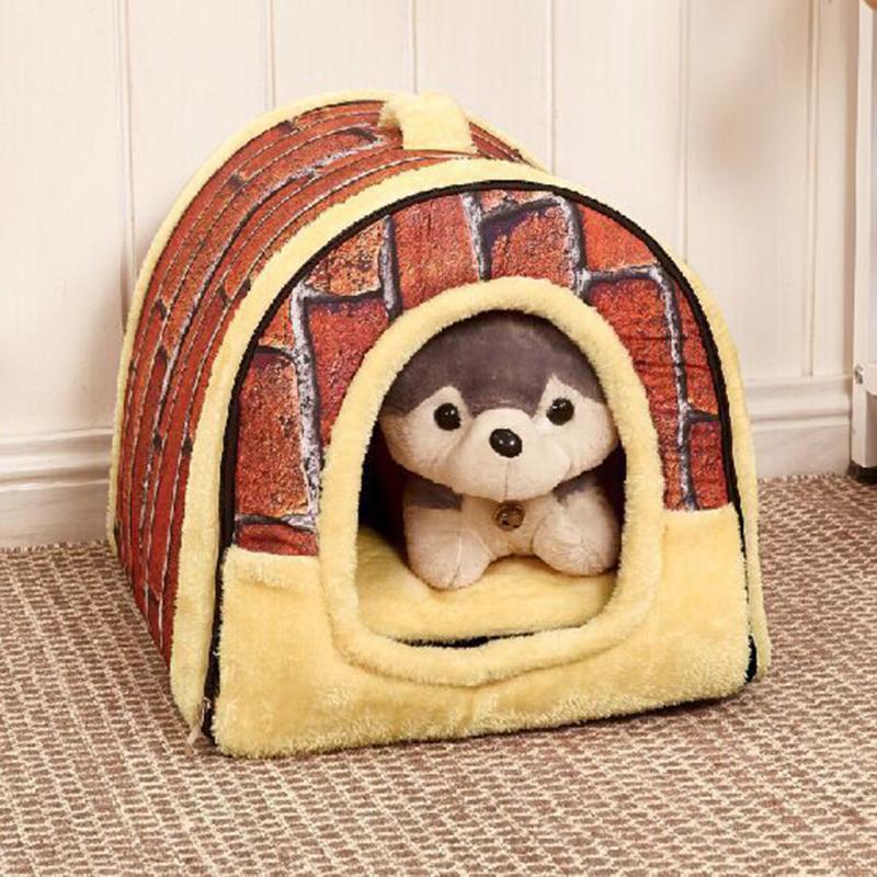 Warm Plush Foldable Pet Bed Soft Dogs Cat House Nest with Mat Travel Pet Bed Bag