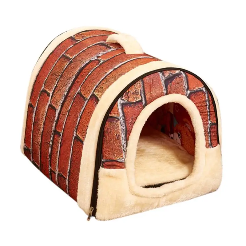 Warm Plush Foldable Pet Bed Soft Dogs Cat House Nest with Mat Travel Pet Bed Bag