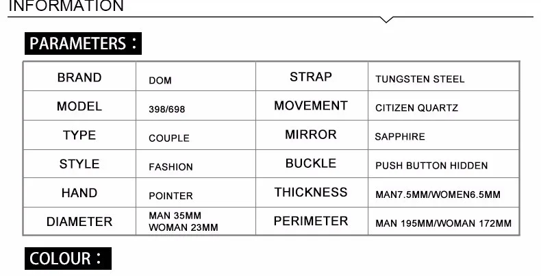 DOM watch men tungsten steel Luxury Top Brand Wrist 30m waterproof Business Quartz watches Fashion Casual sport