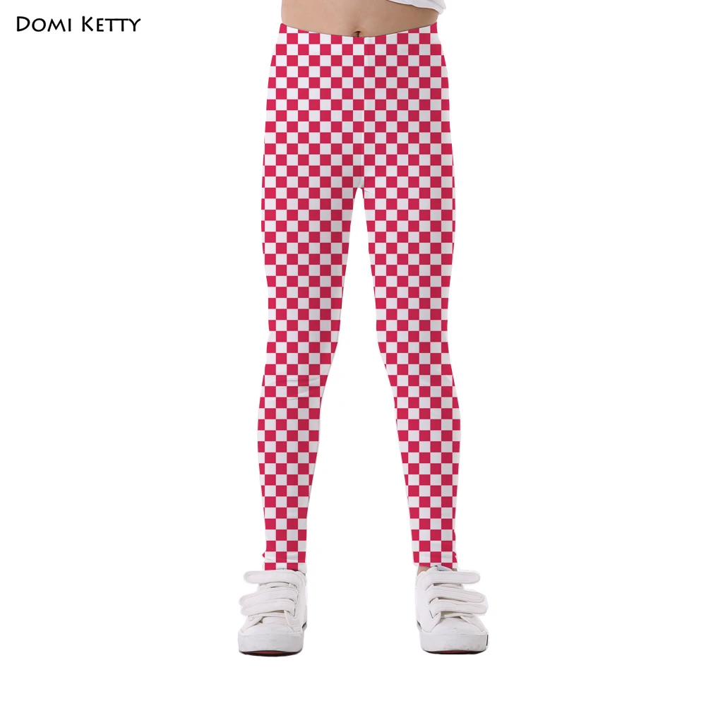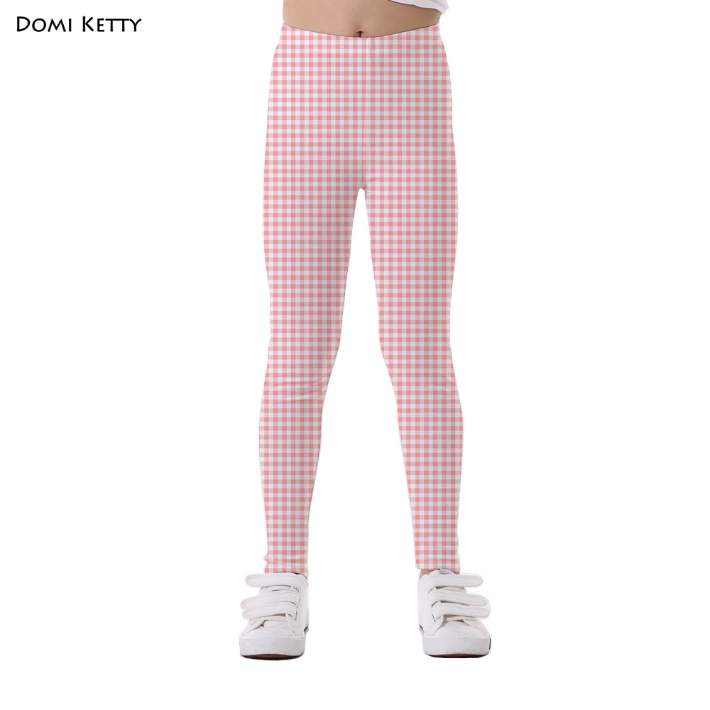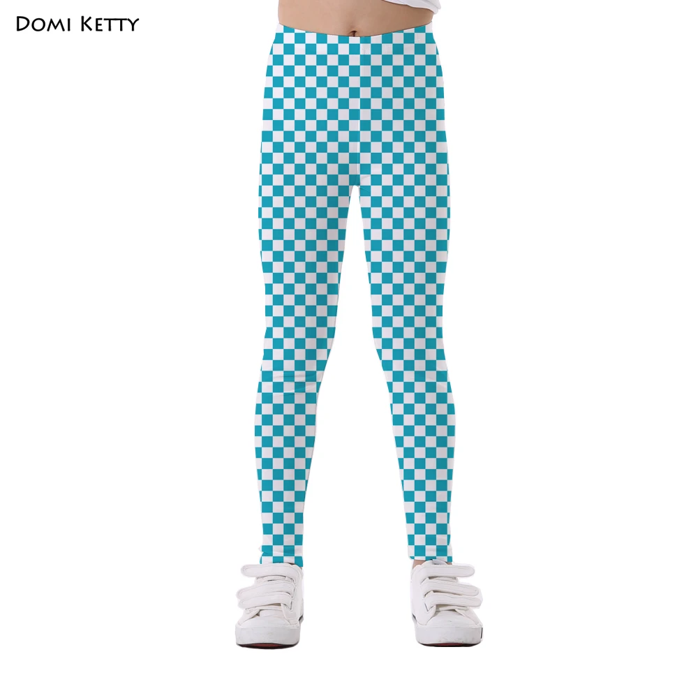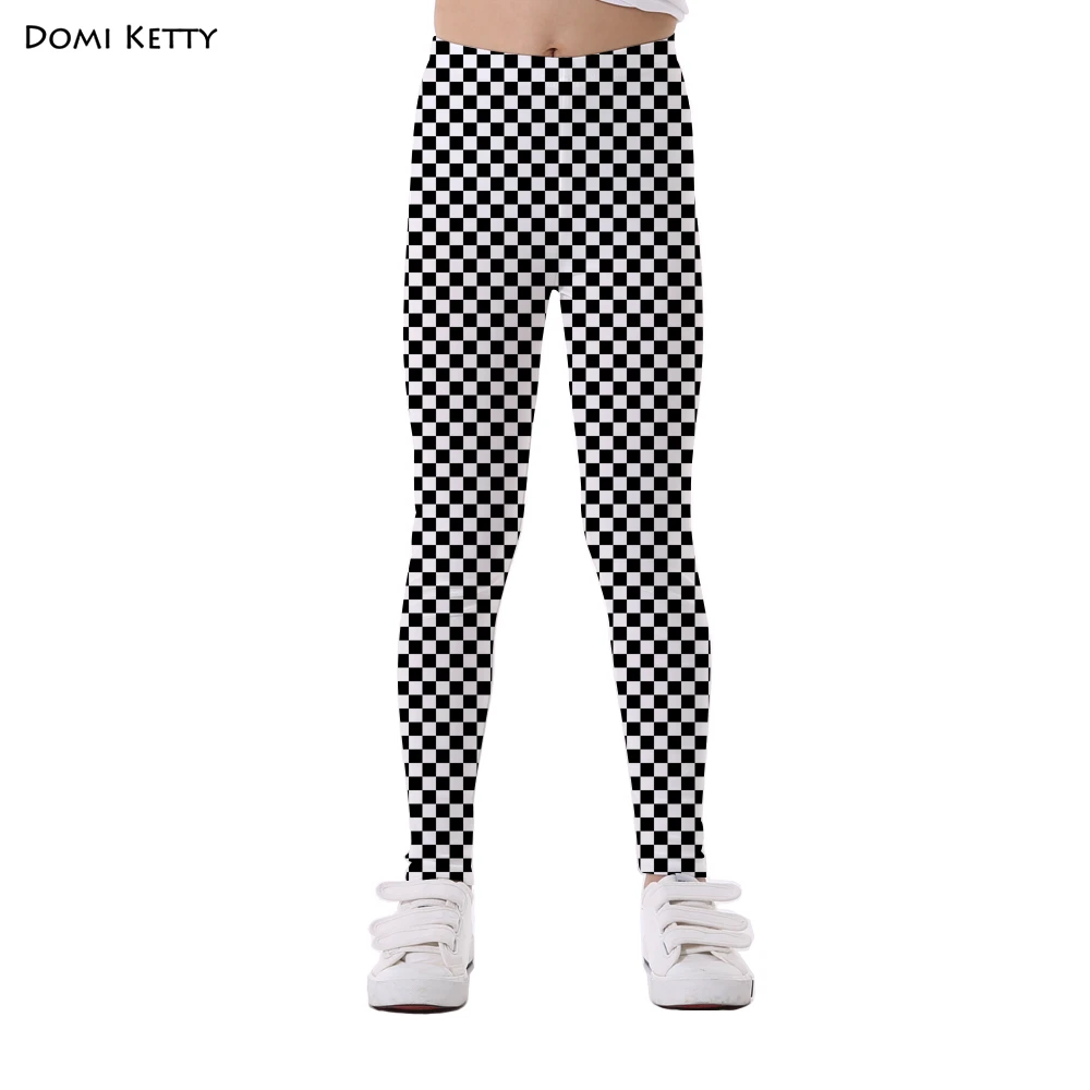 Domi Ketty girls leggings print white black mosaic block children casual fitness high waist legging kids cartoon pants trousers