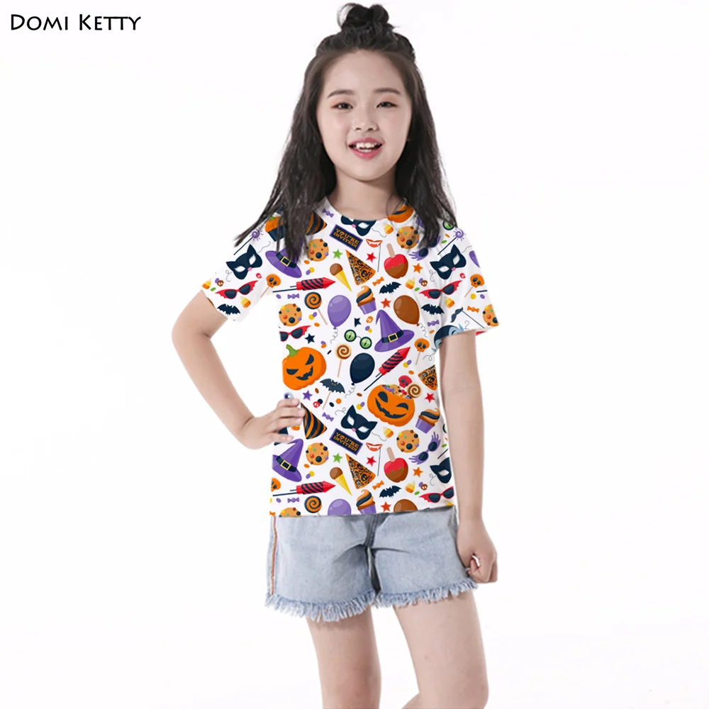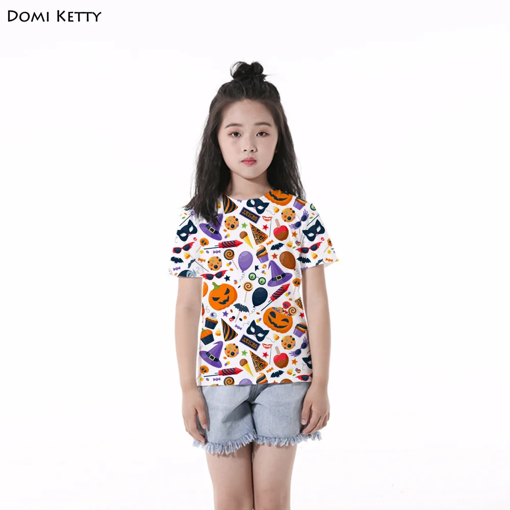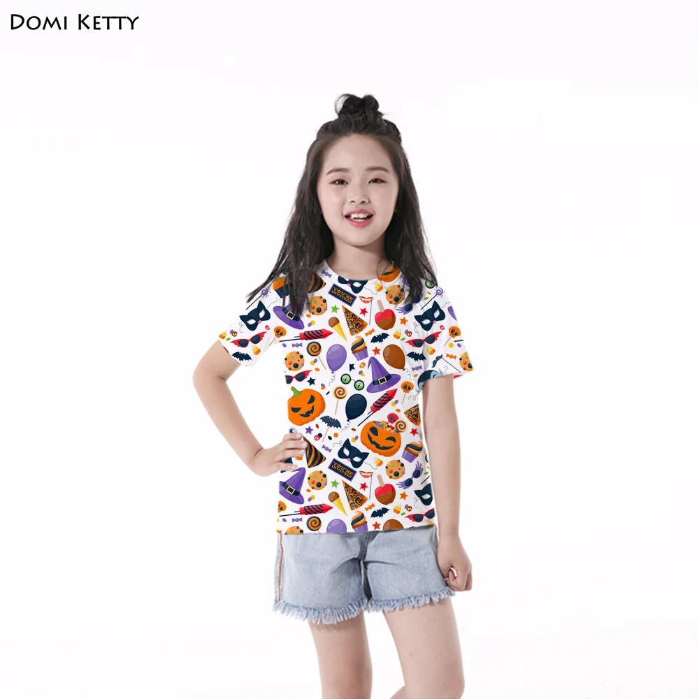 Domi Ketty girls t shirts print Pumpkin bat candy cartoon children boys short sleeve tee Halloween Party kids casual top costume