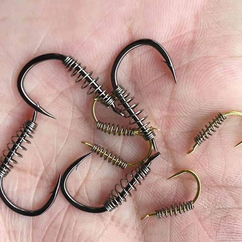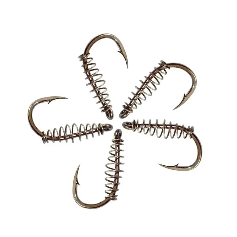 This type of fishing hook is with spring,which plays a great role in pulling baits.