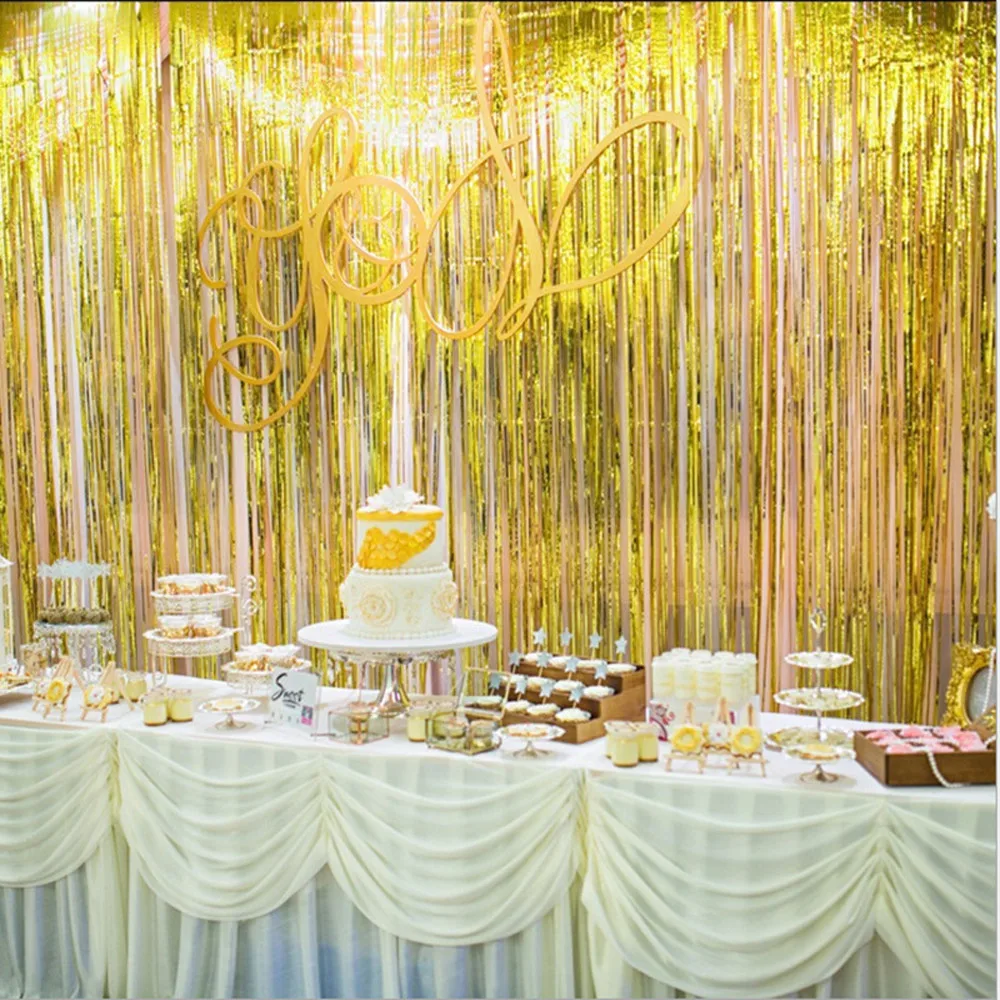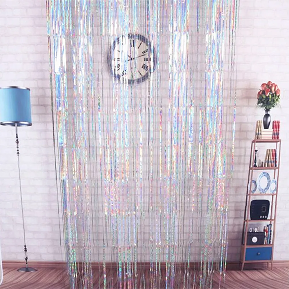 Door Wall Foil Curtains Fringe Garlands Ribbons Backdrop Curtains 2m*1m Wedding Birthday Party Event Home Room Decor F608