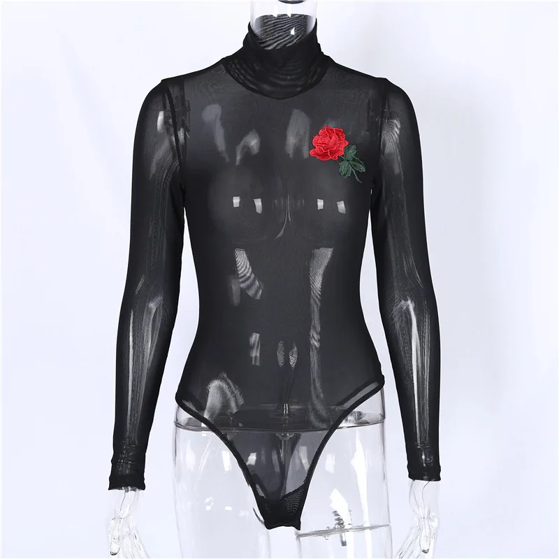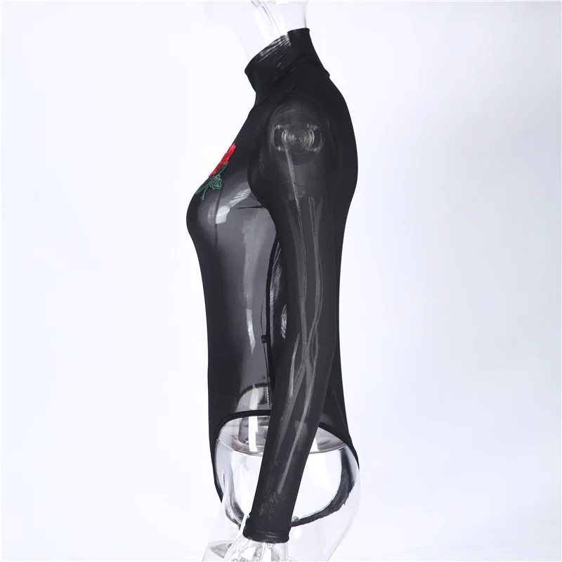 DoreenBow Floral Embroidery Bodysuits Women Sexy Sskinny Jumpsuit Romper Summer Streetwear Party Playsuits Long sleeve Rose