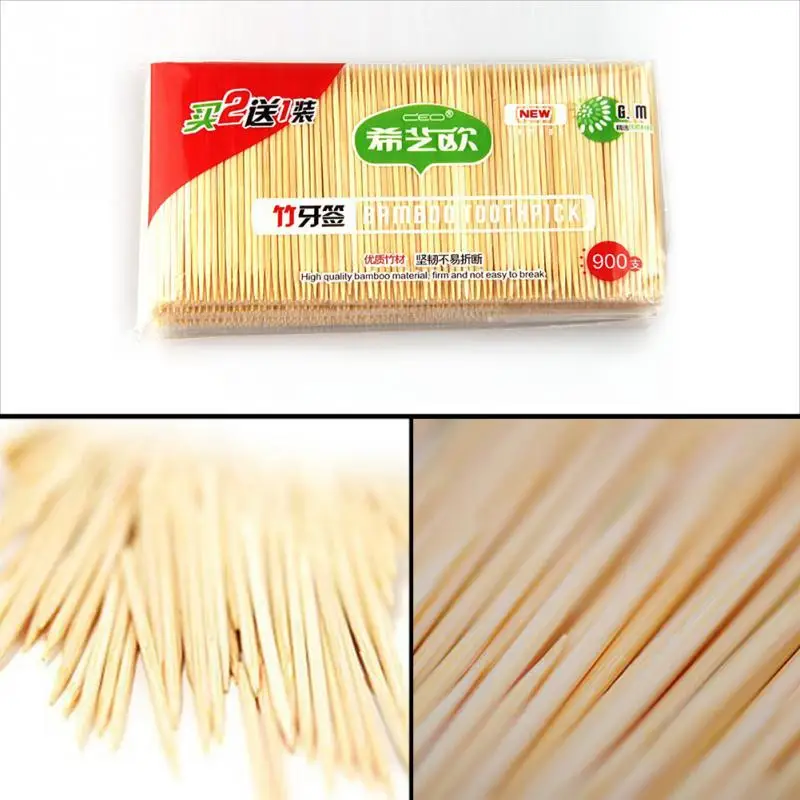 Double Bamboo Oral Care Toothpick Wooden Green Natural Pointed