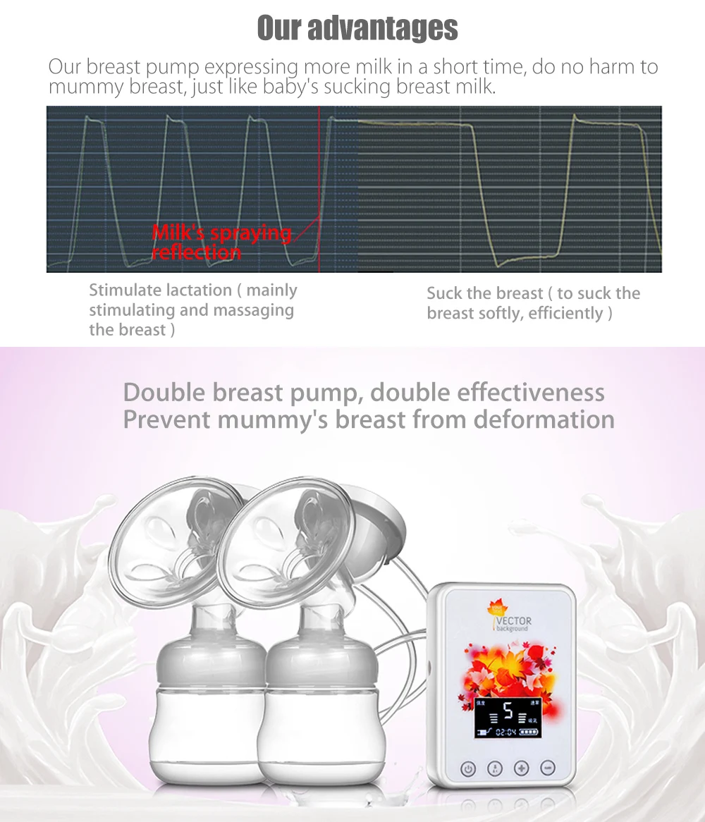 Double Intelligent Electric Breast Pump Milk Bottle Massage Noise Reduction Frequency Conversion Backflow Protection LCD Display