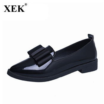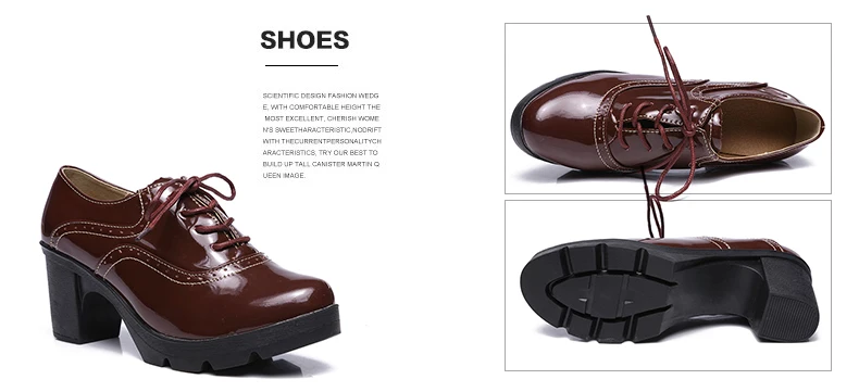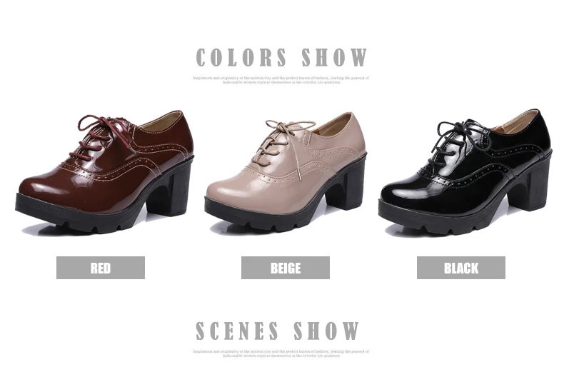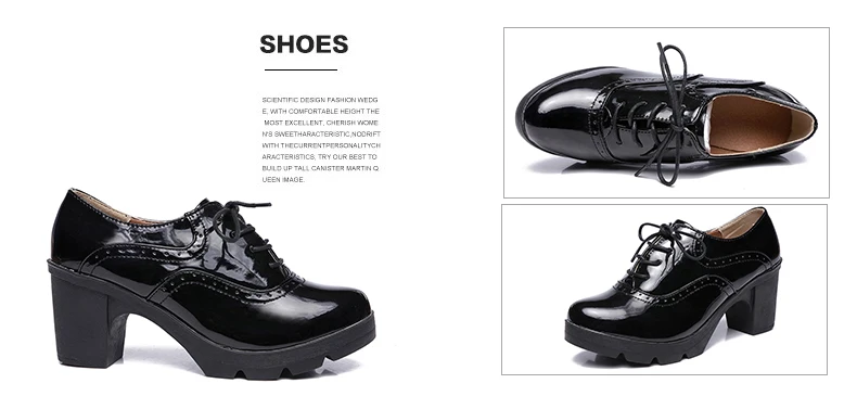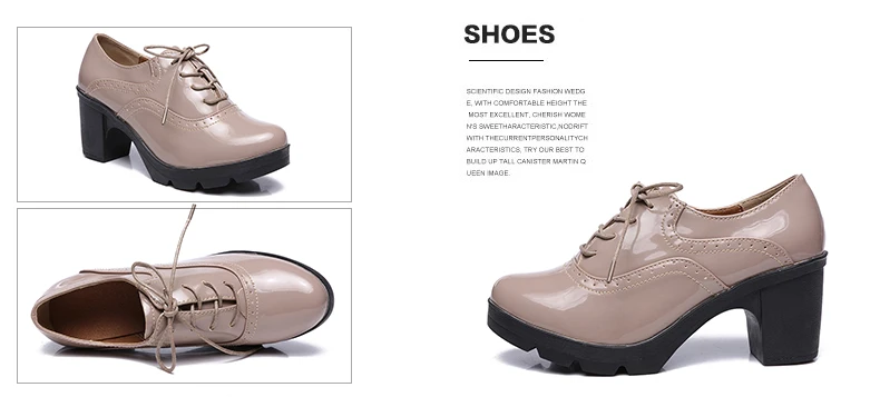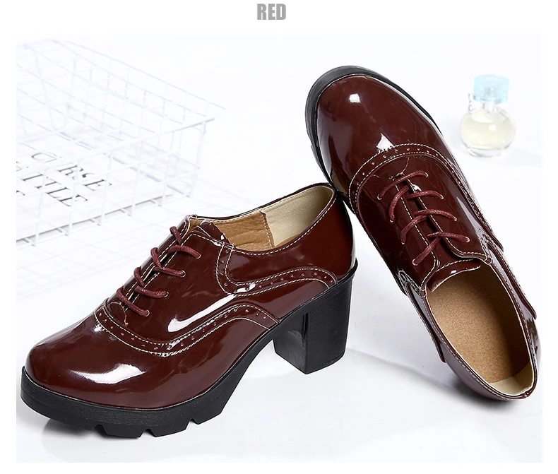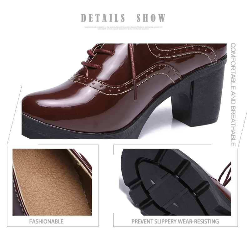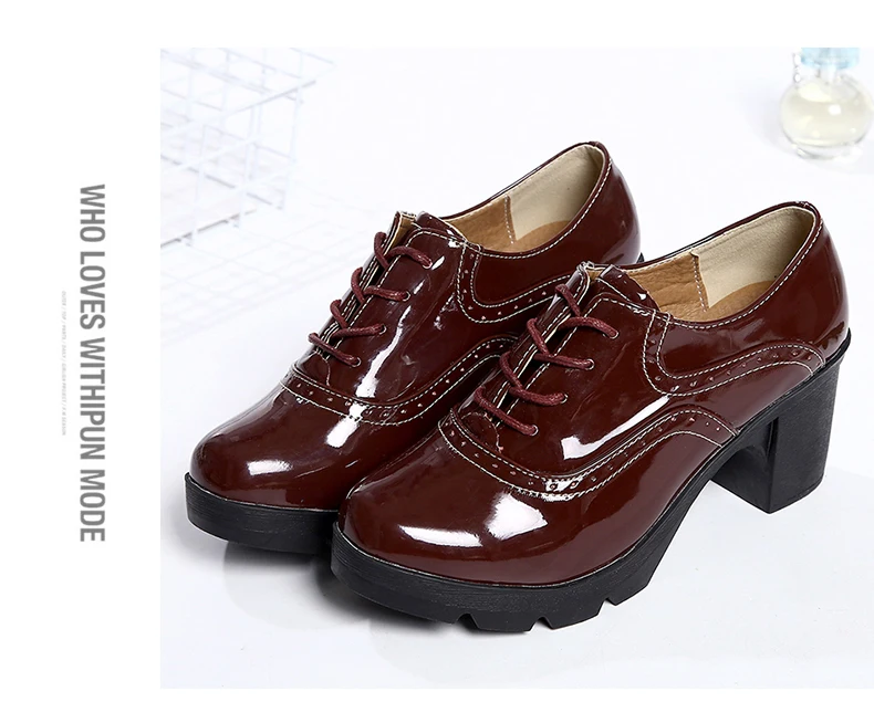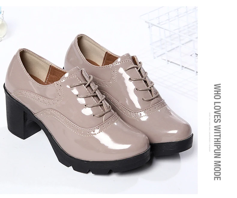 DQG 2018 Winter Women Shoes Casual Lace Up New Brogue Shoes Solid patent Leather High Heel Thick Elegrant Zapatos Tacon