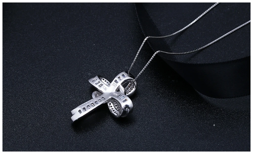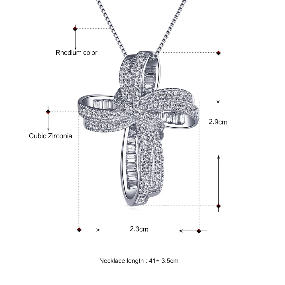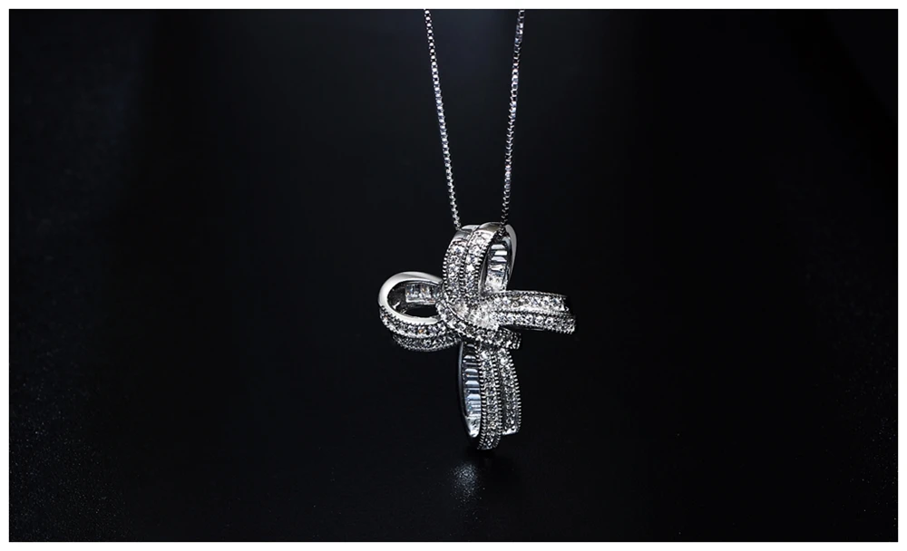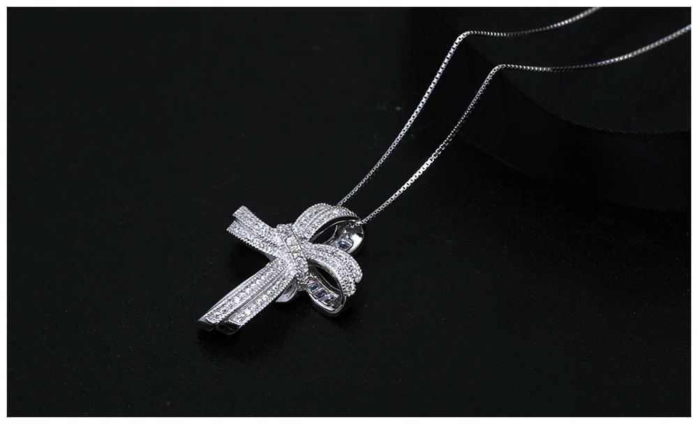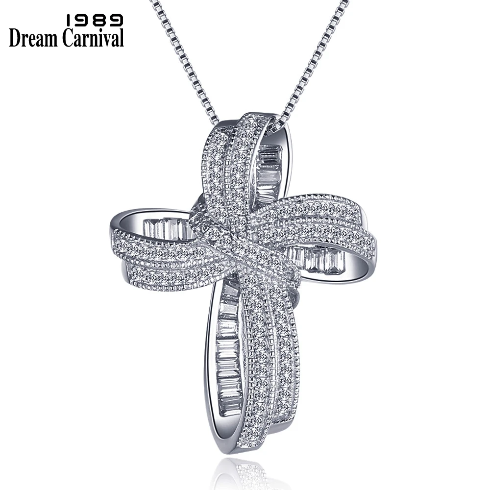 DreamCarnival 1989 Trendy Cross Bowknot Pendant Necklaces Silver 925 Link Chain White CZ Fashion Jewelry Christmas Gifts SZ12599