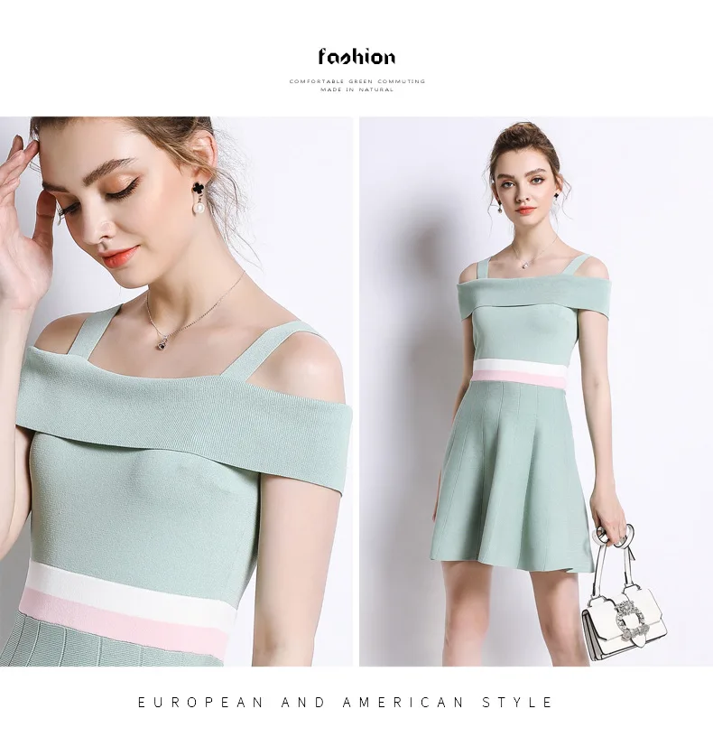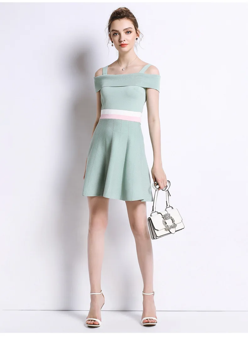 Dress Knitted Europe America Women Gown Ice Sling Collar Knit Dresses Sleeveless Sweater Tennis Dresses Sports Clothes