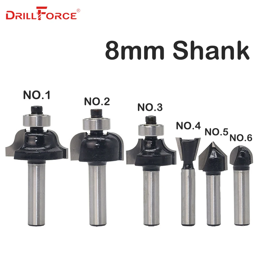 Drillforce 8mm Router Bits Tungsten Carbide Roman Ogee Dovetail Corner Round Cove Box V Grooving Router Bit Mill Cutter For Wood