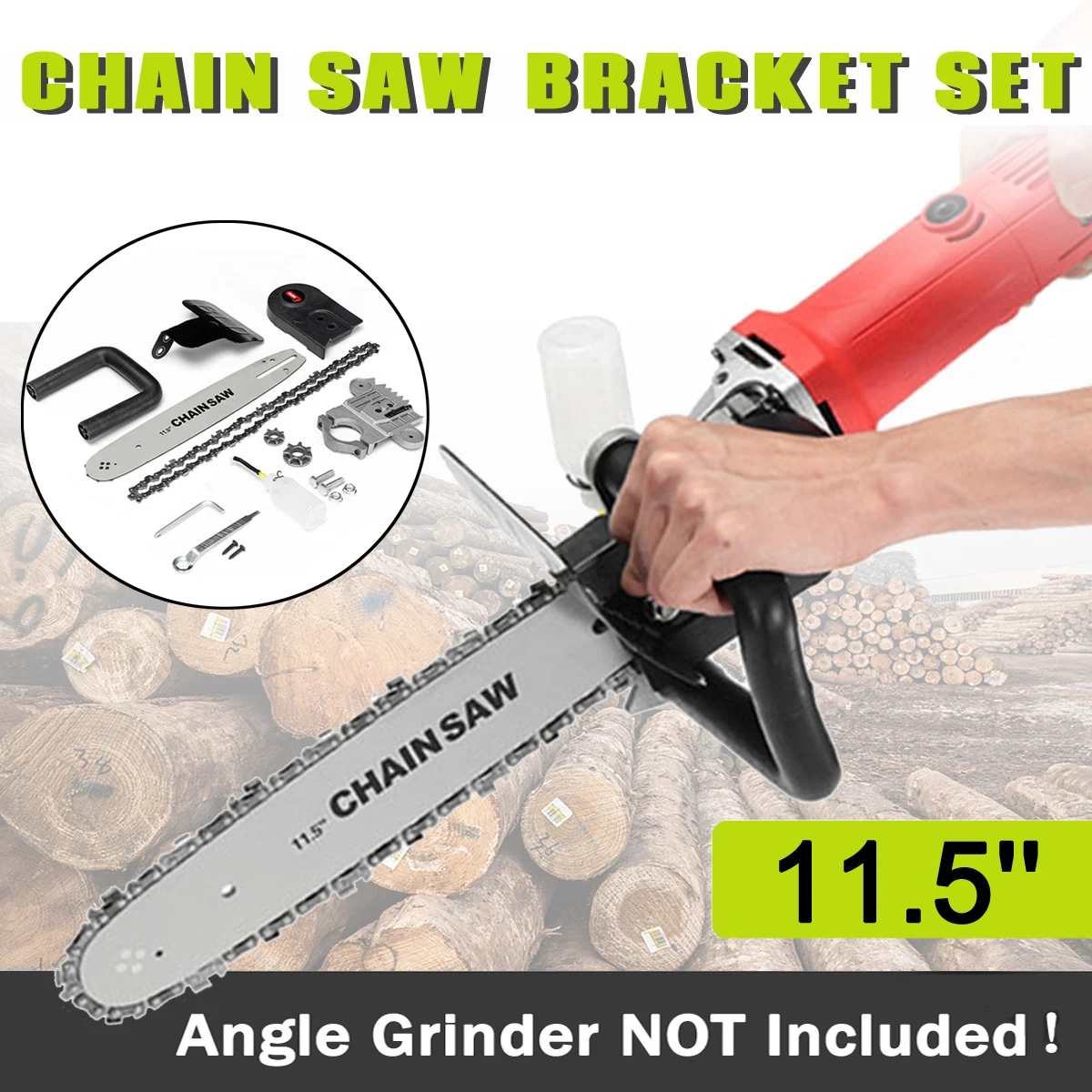 Drillpro Upgrade 11.5 Inch Chainsaw Bracket Changed 100 125 150 Angle Grinder M10/M16 Into Chain Saw Woodworking Tool