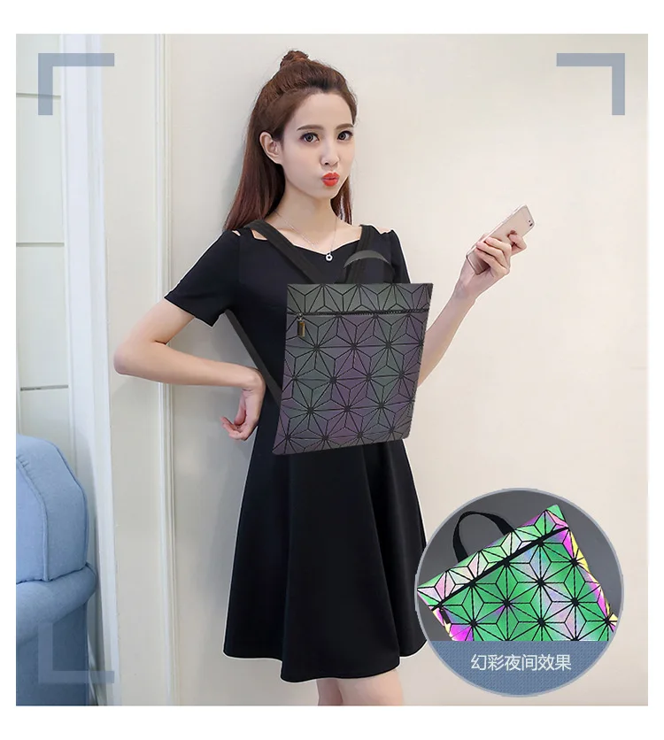 Drop shopping Holographic Bag Fashion Geometric Laser Backpack Women Luminous Bag Mochilas Fold School Bags for Teenage Girls