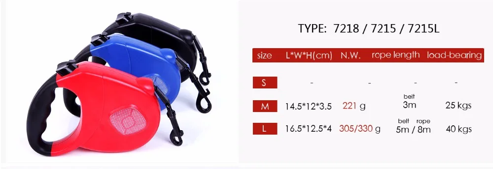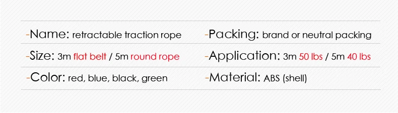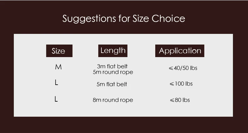 M-3m-flat belt M-5m-round rope L-5m-flat belt L-8m-round rope