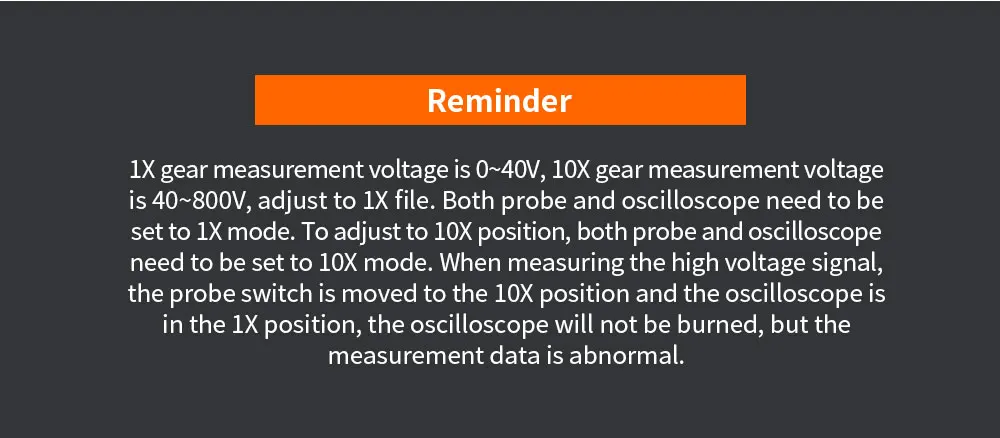 5:Maximum input voltage: 40 V (1X probe), 800 V (10X probe)