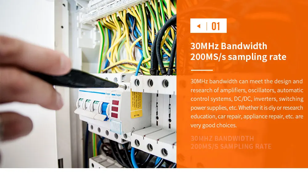 DSO-FNIRSI is a full function, high utility, high performance and cost-effective handheld oscilloscope for the maintenance industry and the R & D industry. The oscilloscope has a real-time sampling rate of up to 200MS/s and a 30MHz analog bandwidth. With complete triggering function (single, normal, automatic), both the periodic analog signal and the aperiodic digital signal can be used freely. Large time base scanning mode can monitor slow level changes. Equipped with high efficiency one button AUTO, the measured waveform can be displayed without complicated adjustment. Display the High Definition LCD screen equipped with 2.4 inch 320*240 resolution IPS full vision technology, the visual effect is very good, no eye, the oscilloscope on the market is almost used cheap TN screen, screen fan white. Extremely convenient and fast waveform storage function, built-in 64M storage space, the maximum storage of 2000 waveform pictures. Powerful waveform file manager, support thumbnail browsing, viewing, details view, flip, delete and other functions. Built in 3000mAh rechargeable lithium battery can be continuously charged for 10 hours at one time. Day mode and night mode can be changed according to their own preferences.