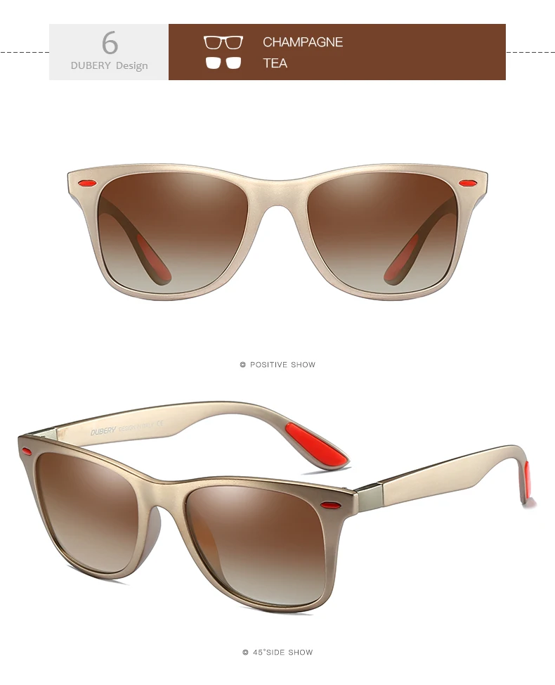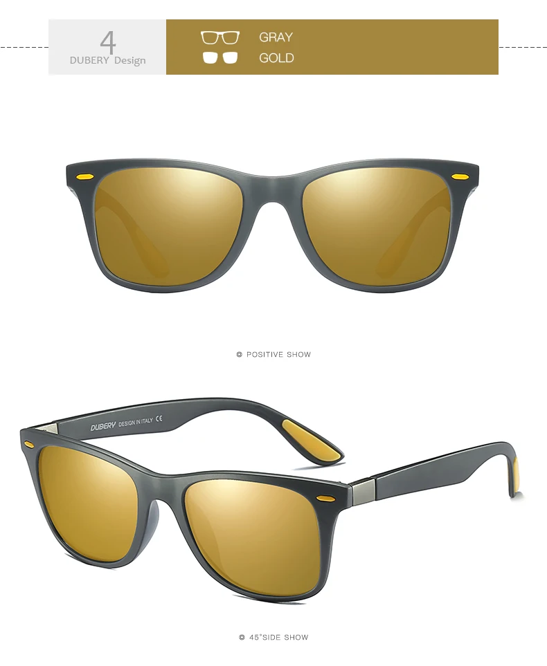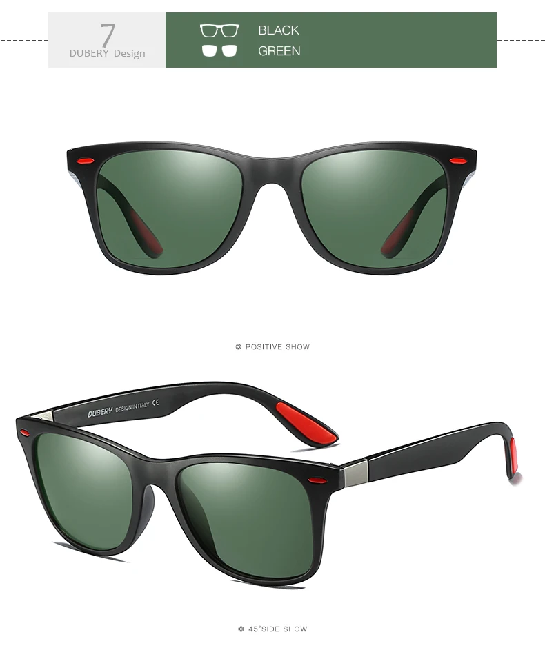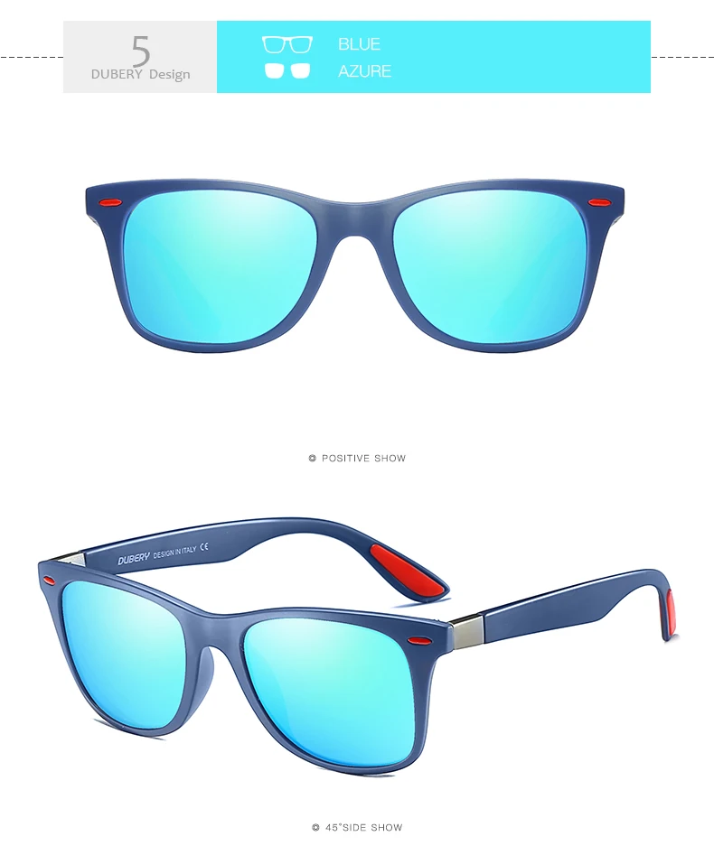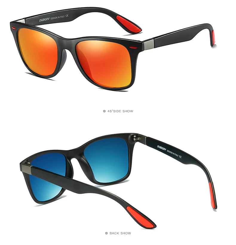 DUBERY Polaroized Sunglasses For Men Sport Driving Sun Glasses Men Square Personality Color Mirror Luxury Brand Designer UV400