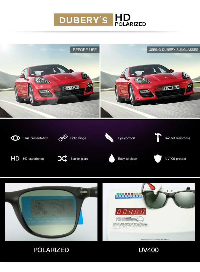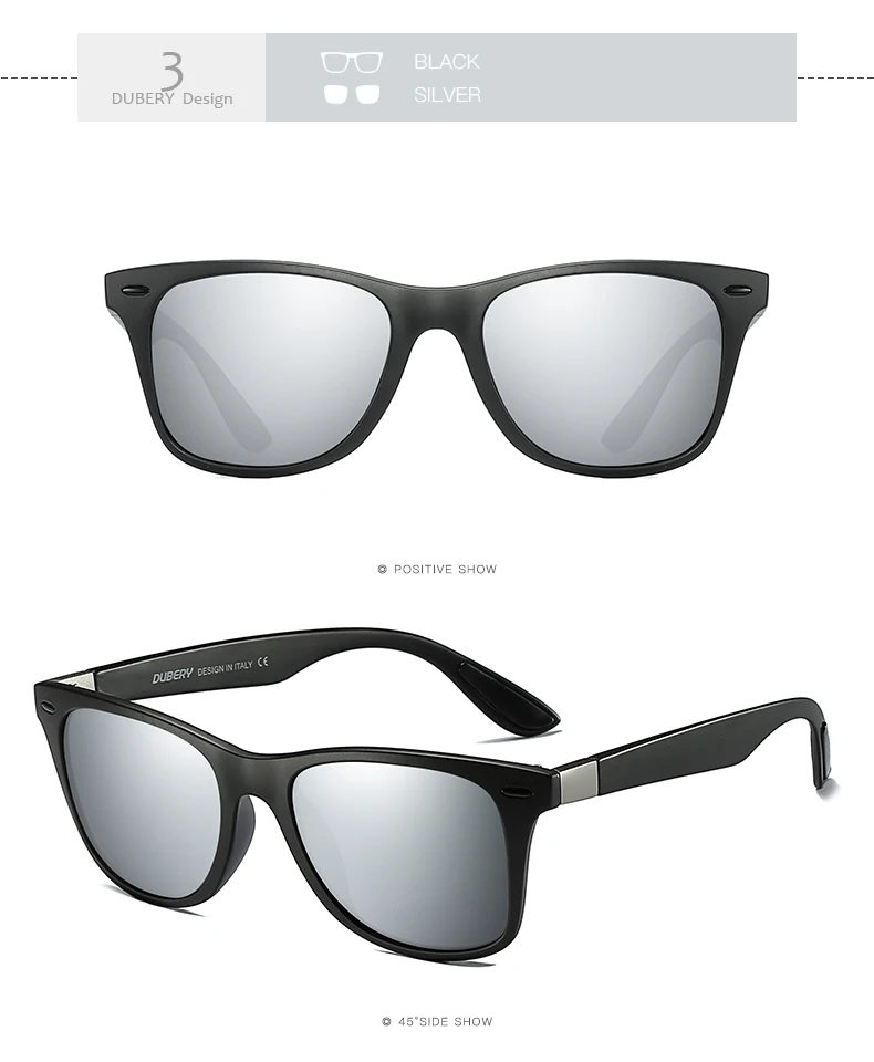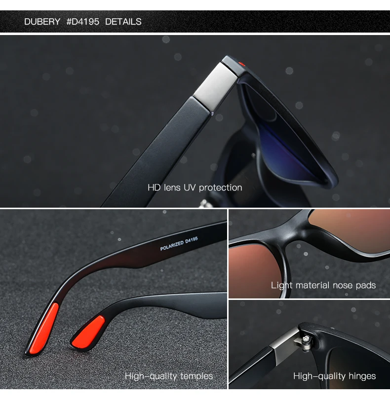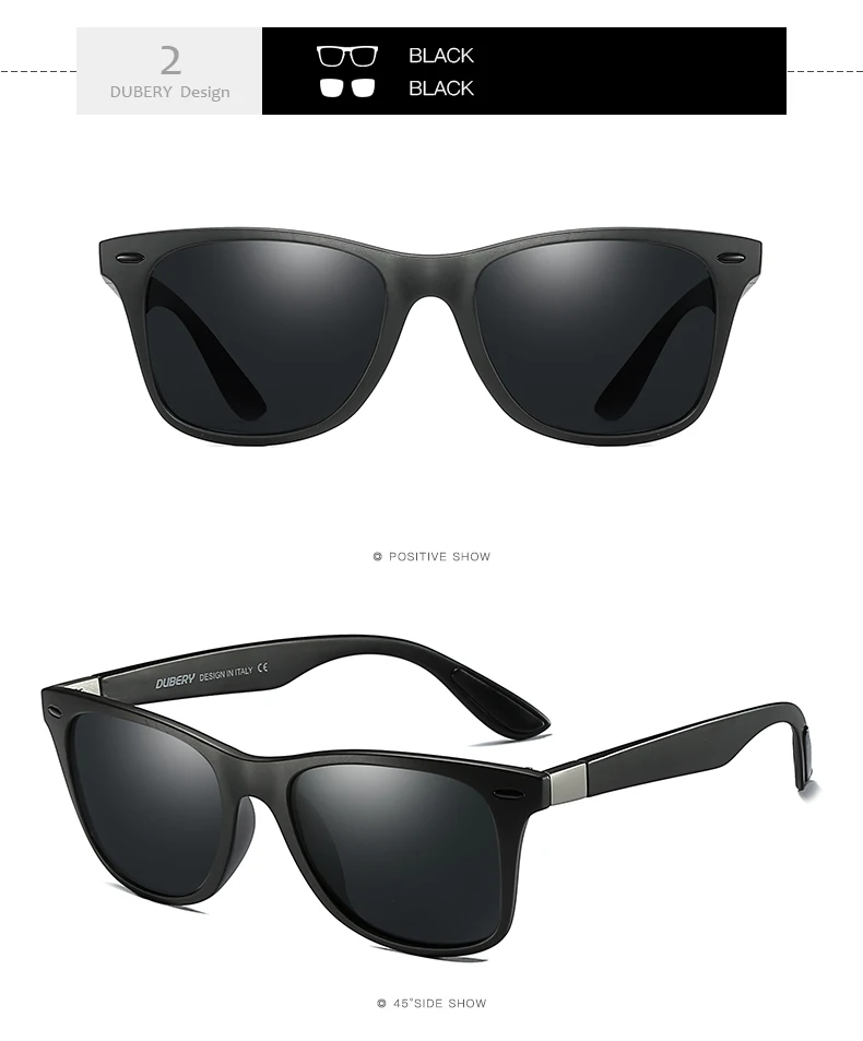 DUBERY Polaroized Sunglasses For Men Sport Driving Sun Glasses Men Square Personality Color Mirror Luxury Brand Designer UV400