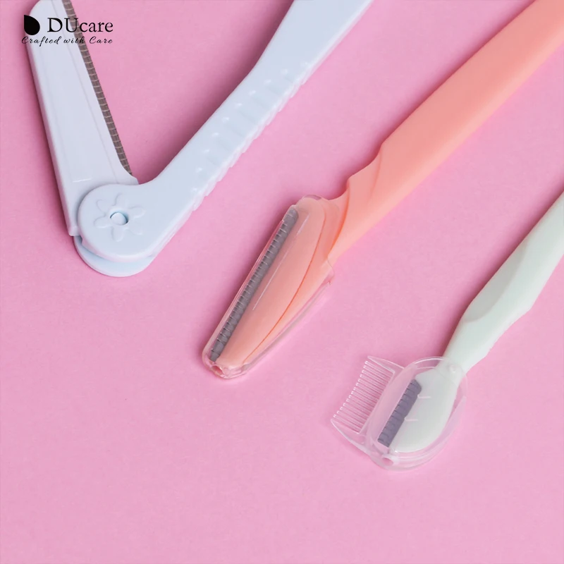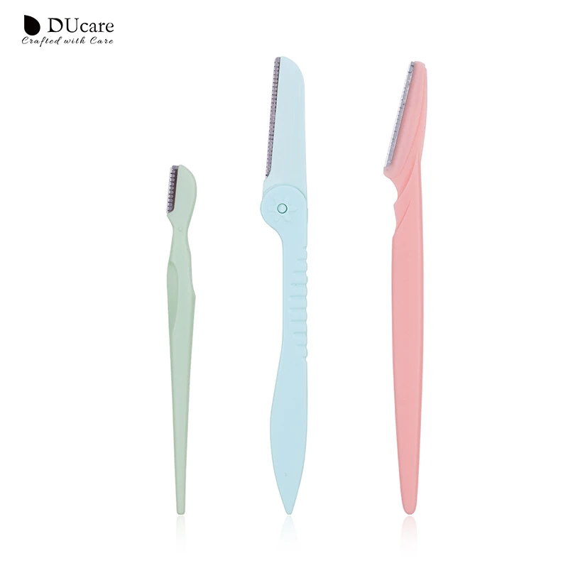 DUcare 3PCS/Pack Colorful Eyebrow Trimmer Safe Makeup Knife Eyebrow Blades Face Hair Removal Scraper Shaver Makeup Beauty Tools