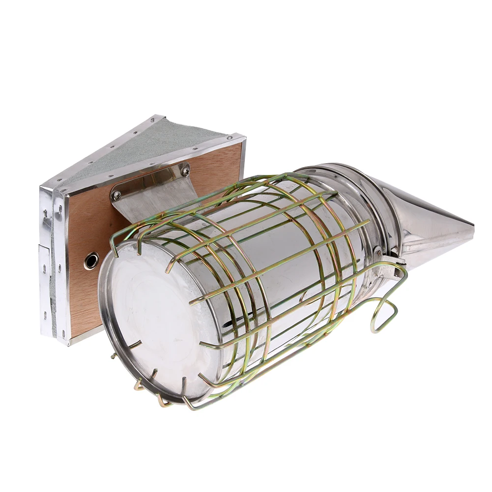 The smoke transmitter is also known as a smoke fumigation machine, used to subdue or drive bees. The bees will suck up a lot of honey and occurs avoidance behavior. After abdomen filled with honey, the bee is not easy to sting, they become docile. The smoke transmitter is composed of two main parts: a chimney and a bellows. A chimney is made up of a combustion chamber, a stove railing, and a cylinder cover. When in use, the hay dead leaves lit into the combustion chamber, cover the cylinder, and then compress the bellows to let the smoke out. Smoke transmitter is mainly used to inspect bee colonies, taking honey, merging bee colonies and attracting queen bees.
