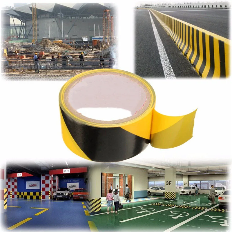 Durable Quality 45mm Black and Yellow Self Adhesive Hazard Warning Safety Tape Marking Safety Soft PVC tape Free Shipping