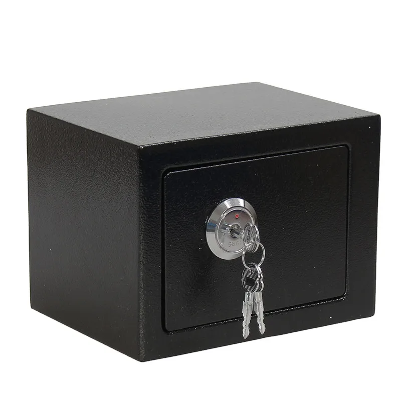 Durable Strong Iron Steel Black Key Operated Security Money Cash Safe Box Home Office House New Arrival