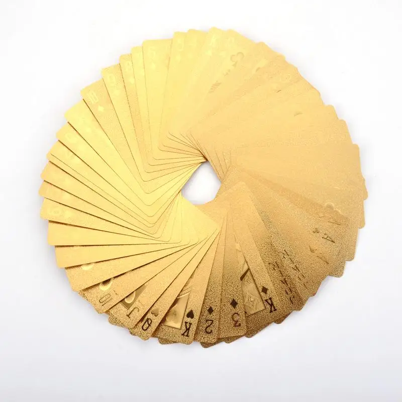 Durable Waterproof Plastic Playing Cards Gold Foil Poker Golden Poker Cards 24K Gold-Foil Plated Playing Cards Poker Table Games