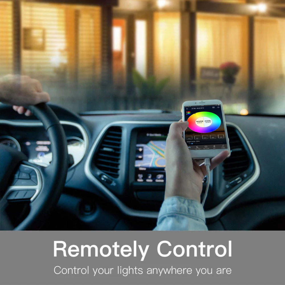 SCHEDULED TIMER AND WAKE UP Light: Smart light bulbs automatically come on and off at given times through the timer function. A gentle sunrise can wake you up in the morning gradually. By using the APP you can turn off the lights after you left the house. And turn them back on before you walking on the door