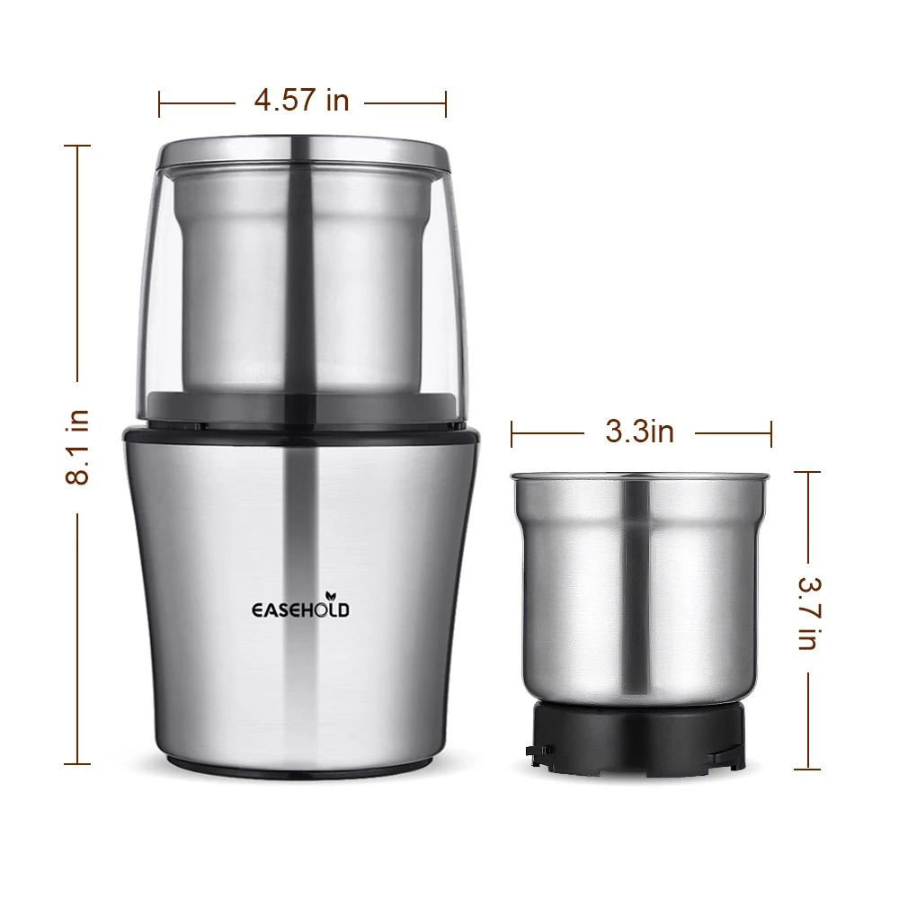 Easehold 200W Electric Coffee Grinder Stainless Steel Body Big Capacity for Salt Pepper Grinder Powerful bean Grinding Machine