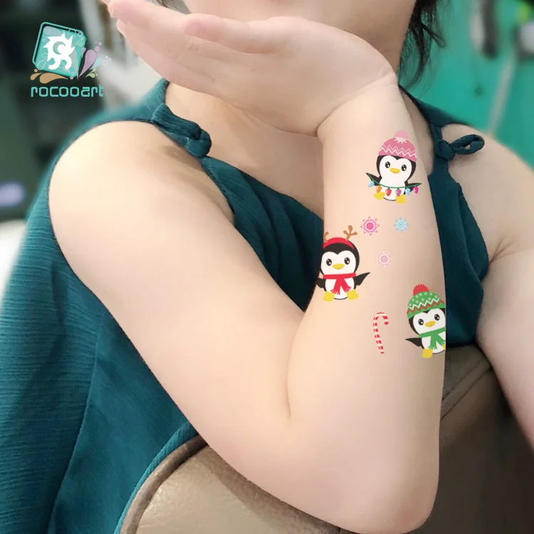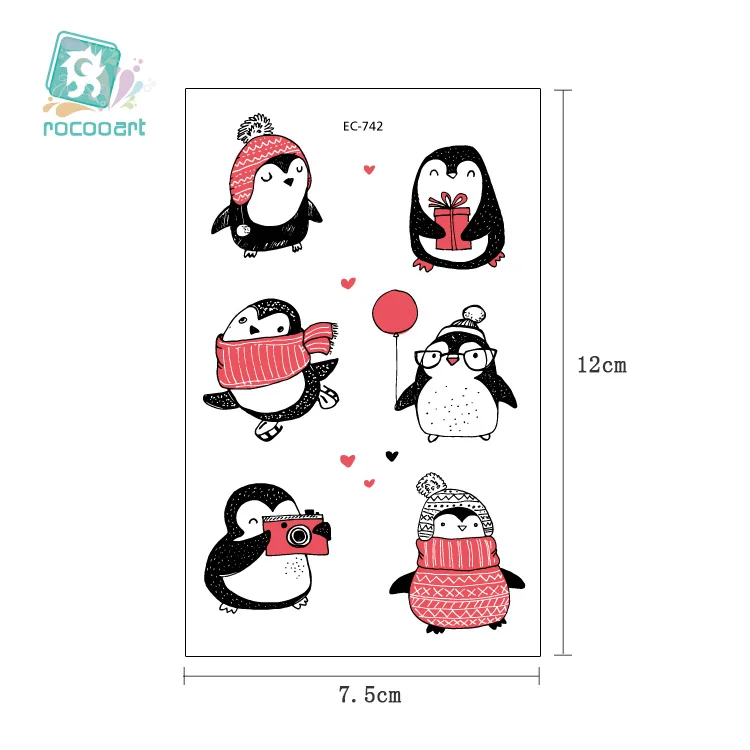 EC742-750 Penguin Series Tattoo Sticker Cartoon Children Cute Merry Christmas Temporary Tattoo Sticker Body Art Flash Taty