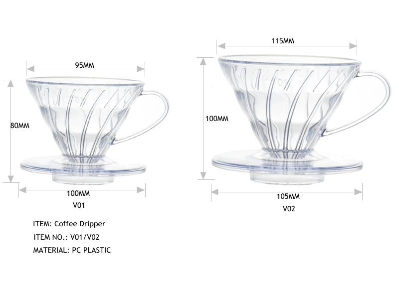 Ecocoffee Plastic V60 Coffee Dripper Hot Brewering Cup 1Cup 2 Cups Counted DIY Household Barista Coffee maker with 40pcs filters