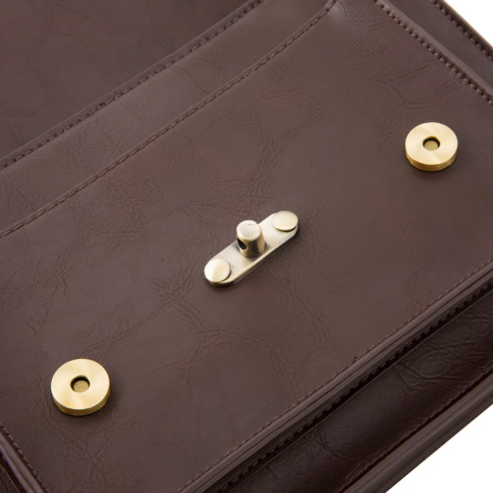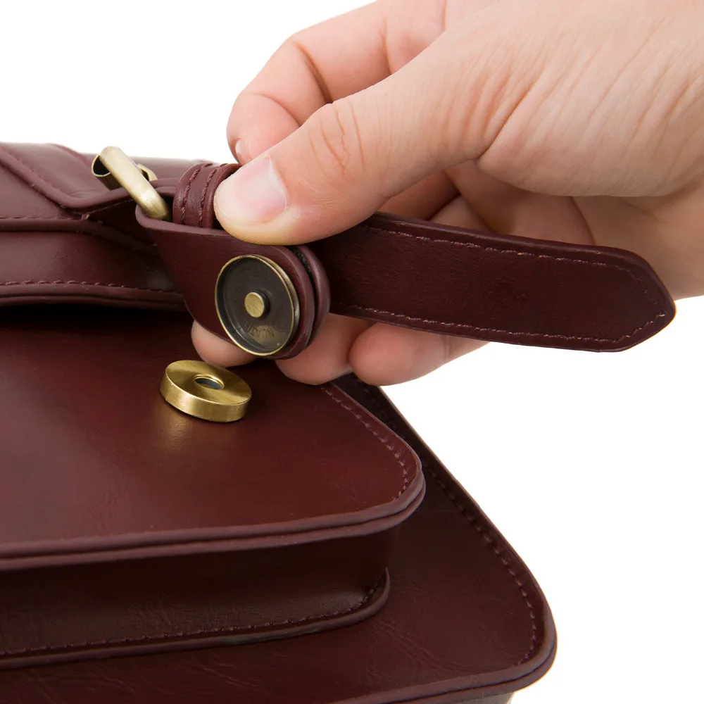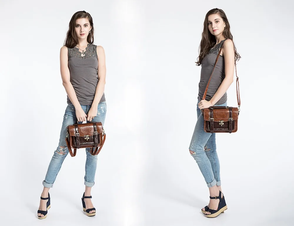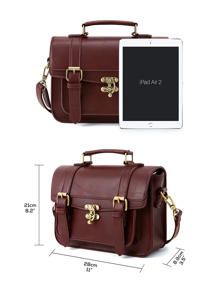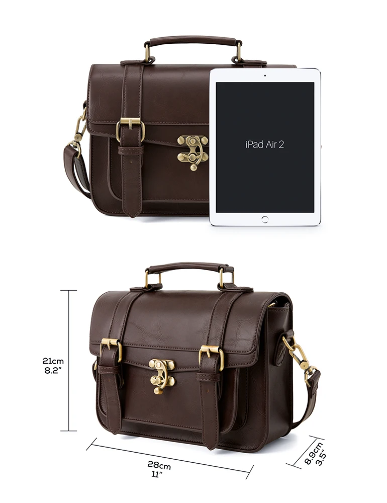 This vintage leather women messenger bag feature large size and durable design.This shoulder messenger bag is suitable for work or school or everyday wear.This vintage leather satchel made from high quality of faux leather. Long strap with vintage golden magnet button on front of this top handle satchel,open the cover,a zipper switch to ensure the safety of the things in this laptop briefcase handbag.This girl messenger school bag feature the large front side pocket,inner the bag features one big zipped pockets,which enable essential little things,like keys,cell phones,Ipad,books and some documents etc.