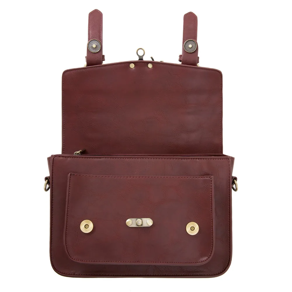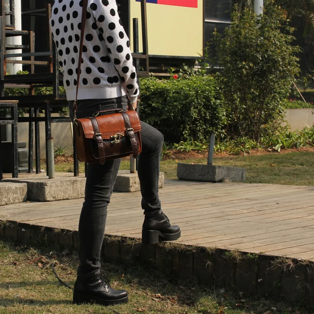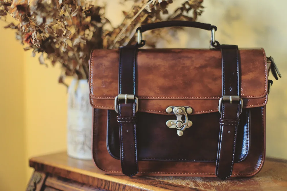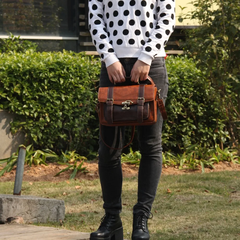 This vintage leather women messenger bag feature large size and durable design.This shoulder messenger bag is suitable for work or school or everyday wear.This vintage leather satchel made from high quality of faux leather. Long strap with vintage golden magnet button on front of this top handle satchel,open the cover,a zipper switch to ensure the safety of the things in this laptop briefcase handbag.This girl messenger school bag feature the large front side pocket,inner the bag features one big zipped pockets,which enable essential little things,like keys,cell phones,Ipad,books and some documents etc.
