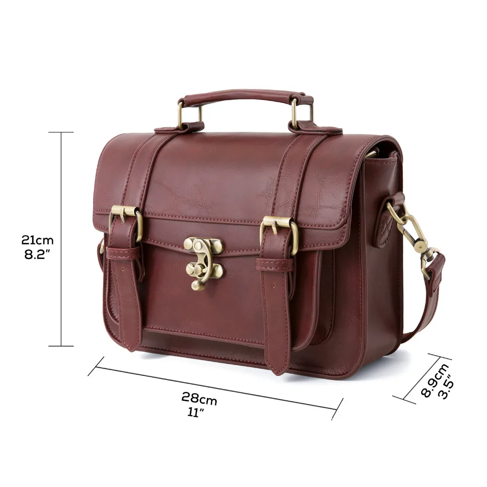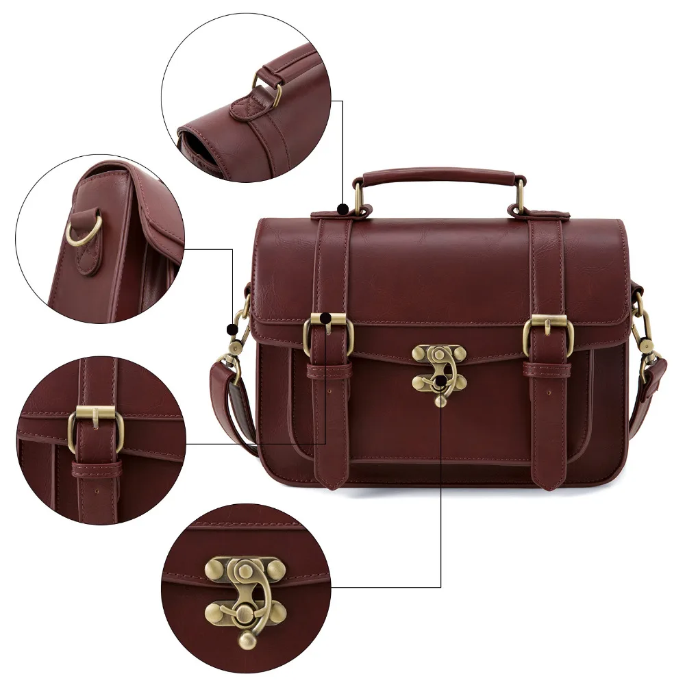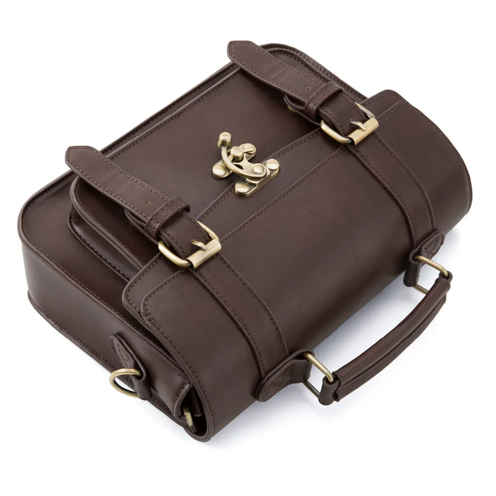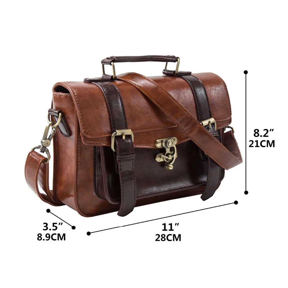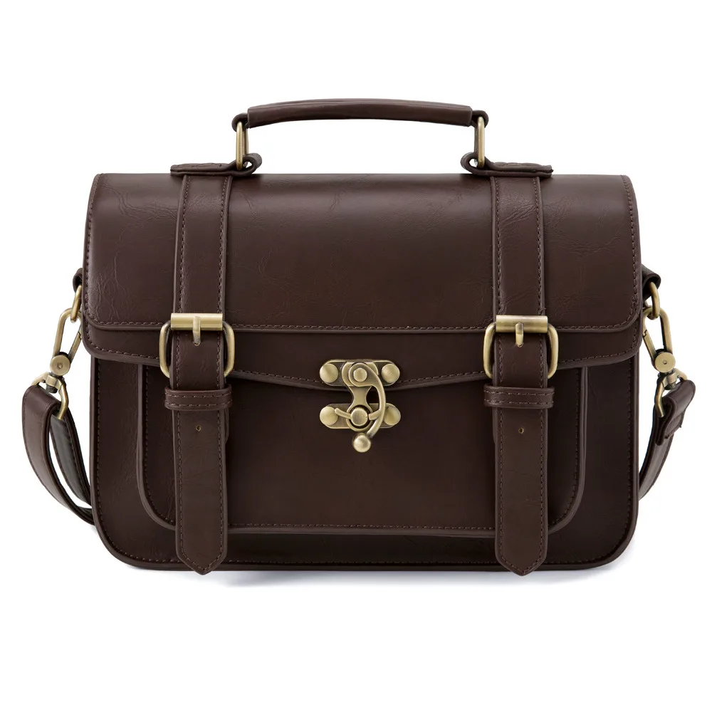 Ecosusi Women Vintage Messenger Bags Leather Bag Satchel Briefcase Crossbody Bag Retro Women Handbag Fashion Classic Mori Girls