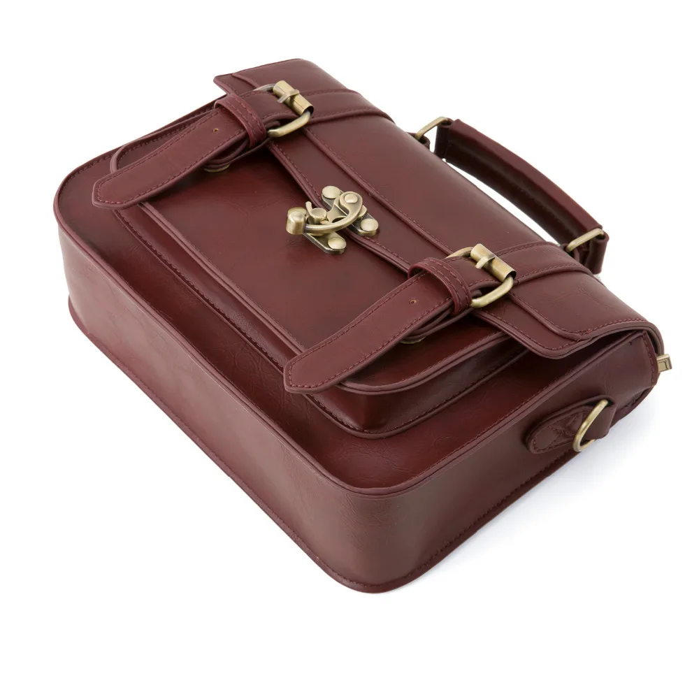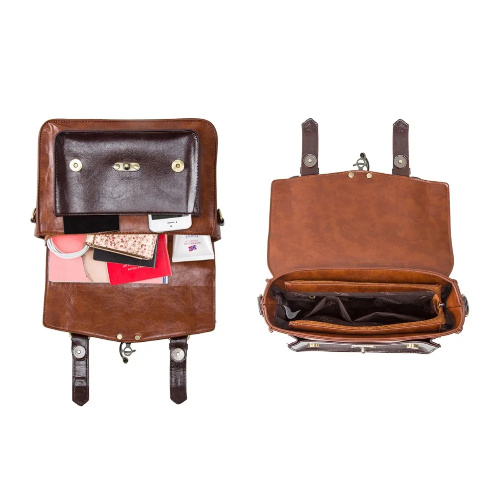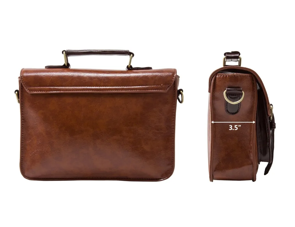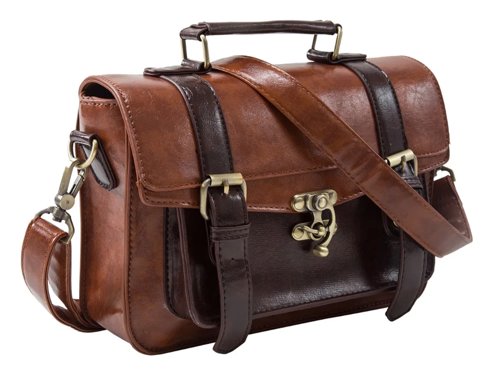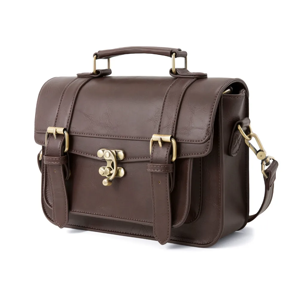 Ecosusi Women Vintage Messenger Bags Leather Bag Satchel Briefcase Crossbody Bag Retro Women Handbag Fashion Classic Mori Girls