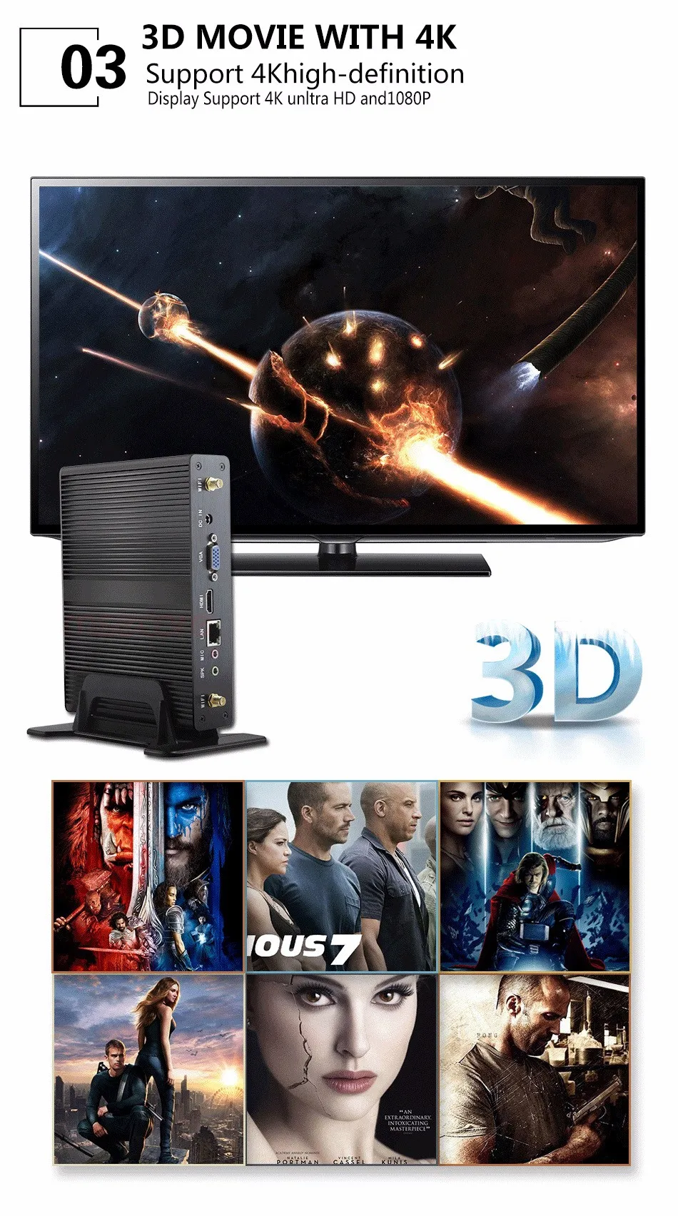 7)- Strong: Work with any brand monitors; 1*Gigabit Lan Nics++1*HDMI+1*VGA+4*USB3.0+2*USB2.0 Fit for multiple application for example integrate with touch devices, industries, car repair shops, security, education, home as HTPC, business, fanancial and projects;