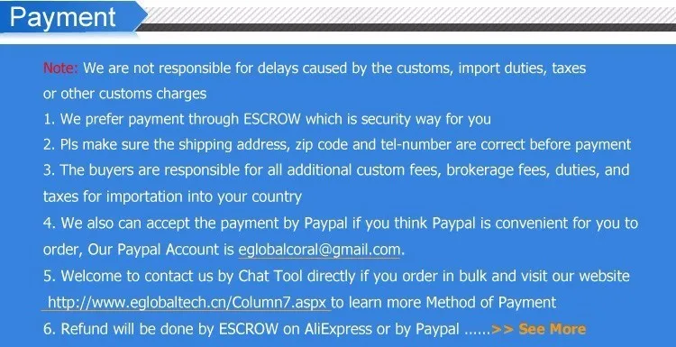 Uprading link: //www.aliexpress.com/item/Eglobal-Extra-Fee-For-Shipping-Cost-or-Making-Up-Product-Cost-Specail-Payment-Link-for-Extra/32788050345.html