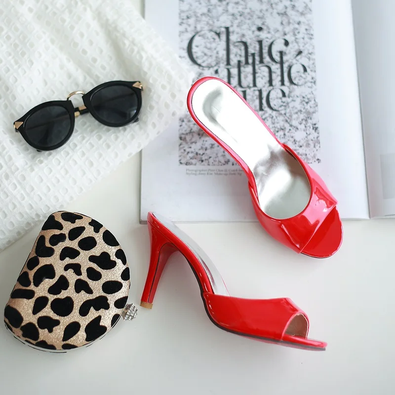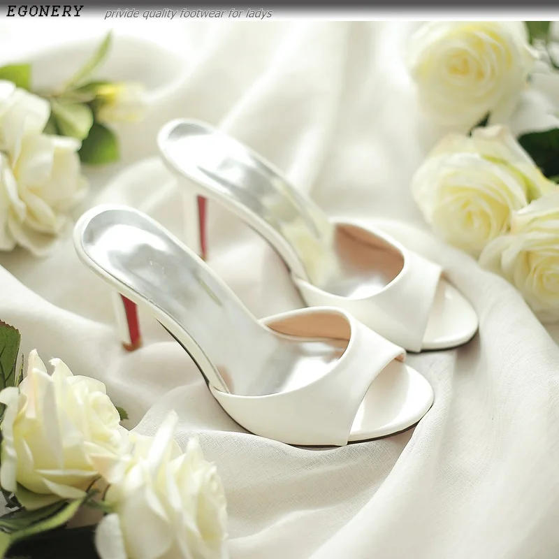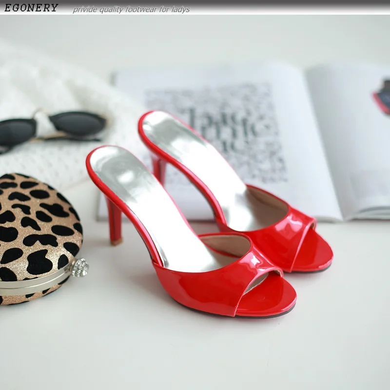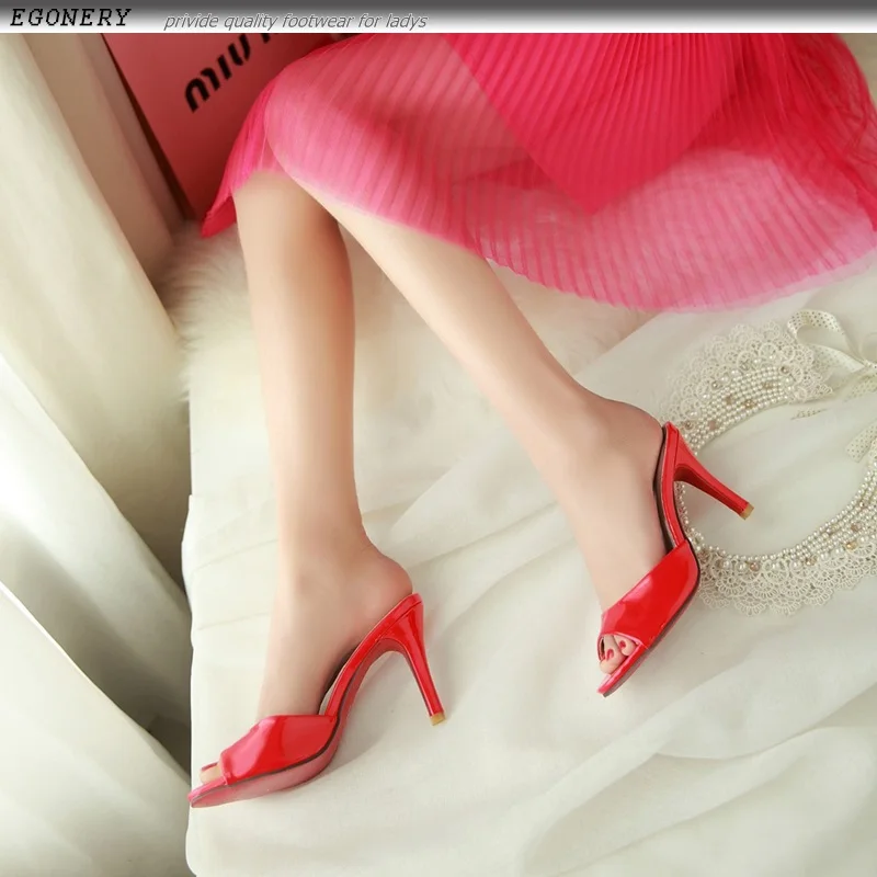 EGONERY Fashion party women slippers 2018 summer red plus size 8.5cm Super High heel woman Beach shoes Outdoor Shallow sandals