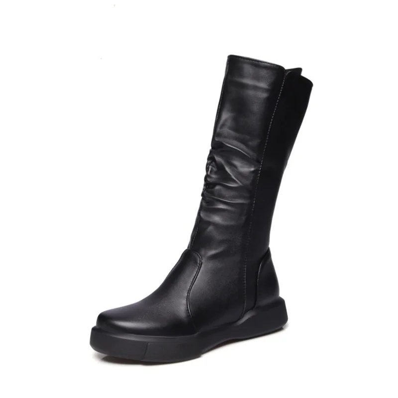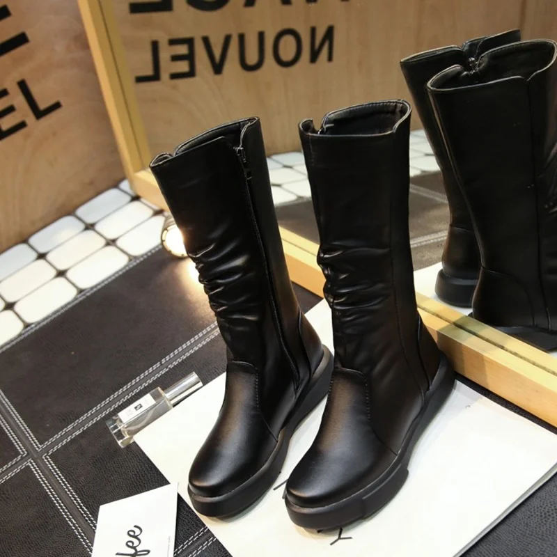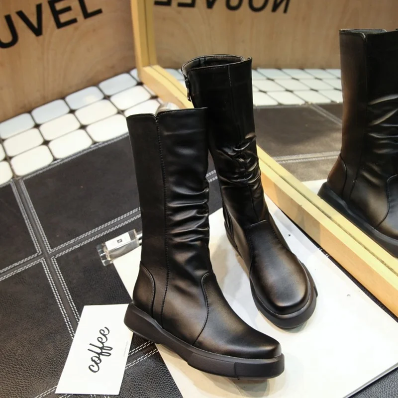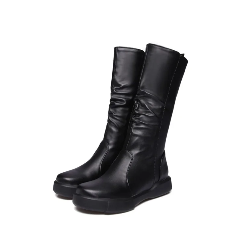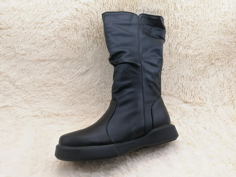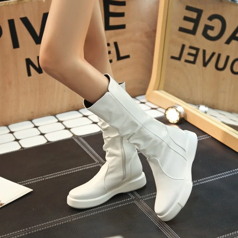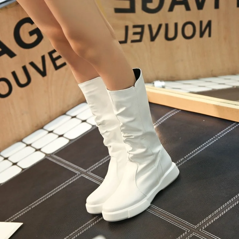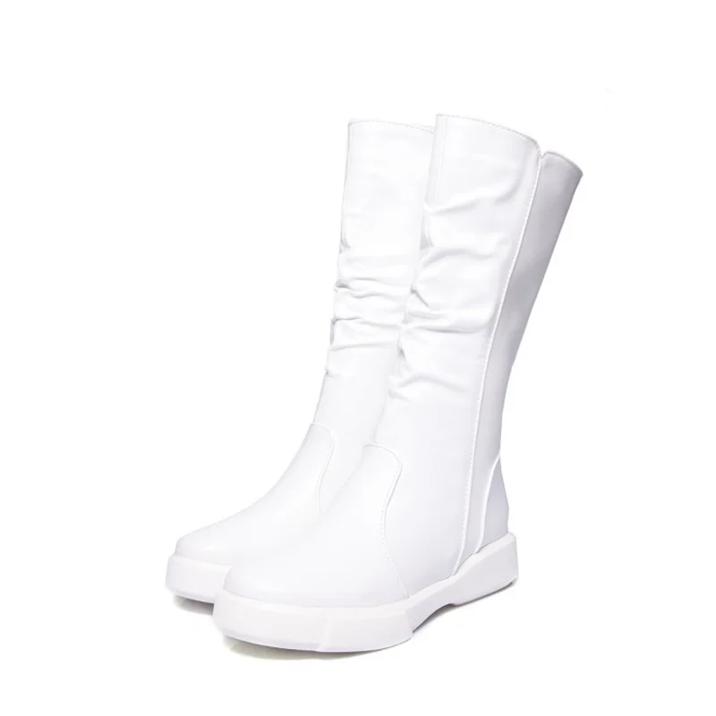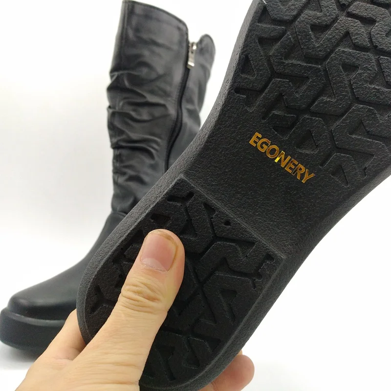 EGONERY plush winter spring mid calf boots woman round toe European zipper black white brand shoes for come women snow boots