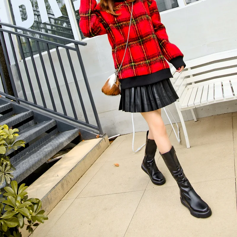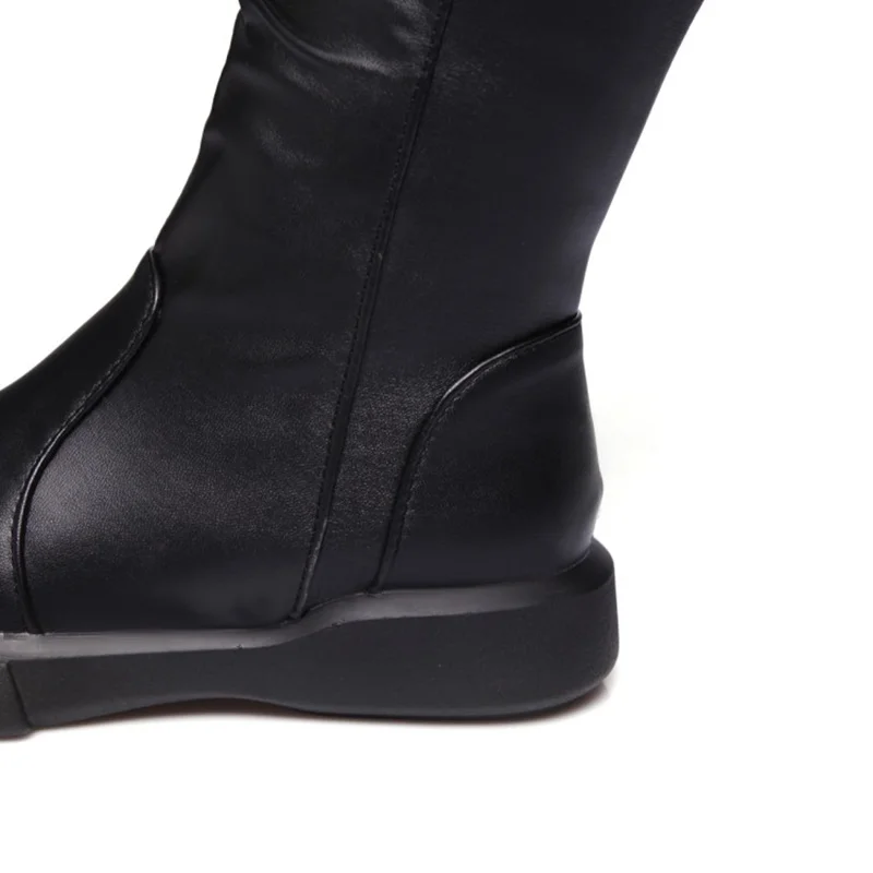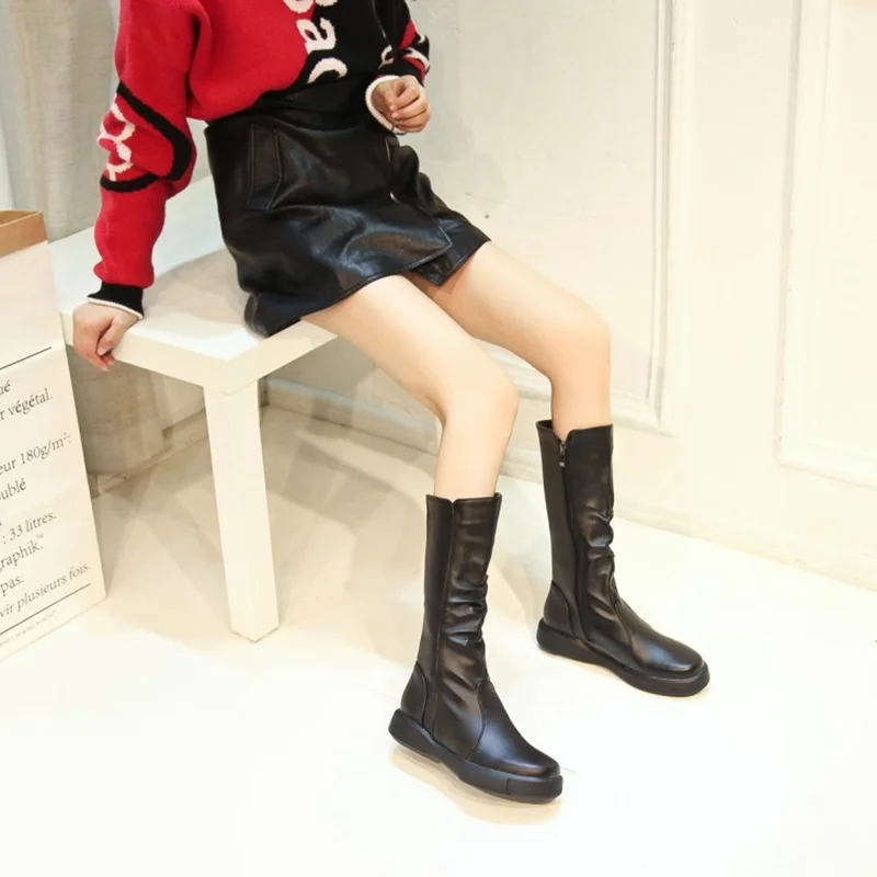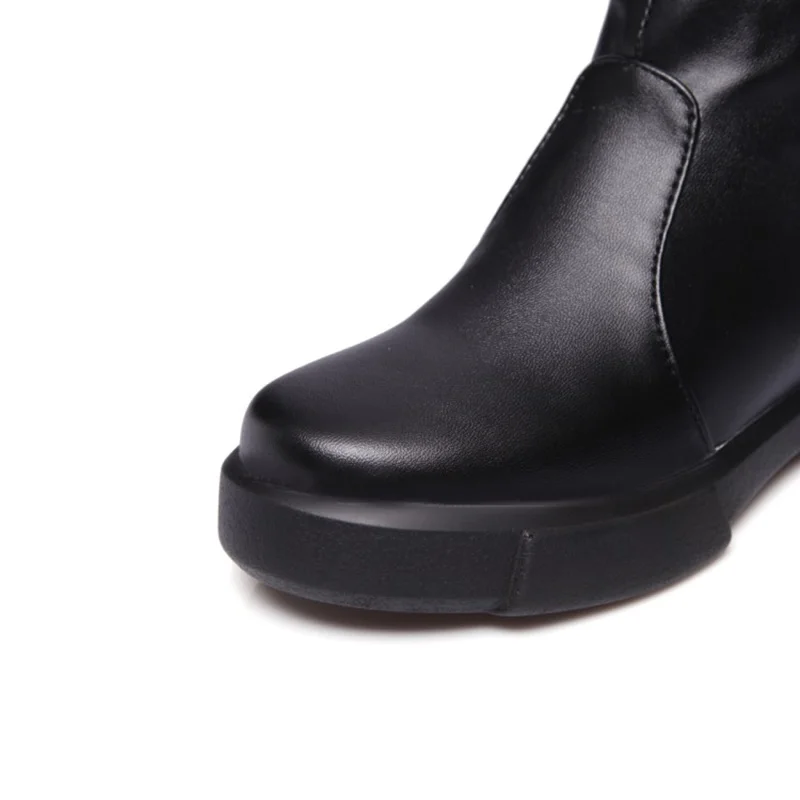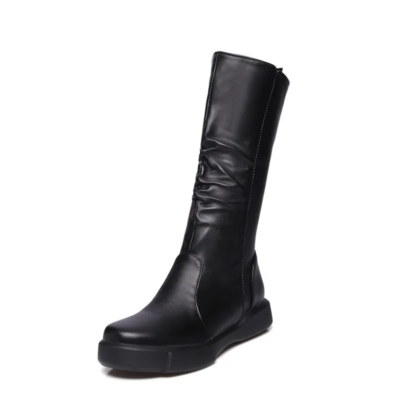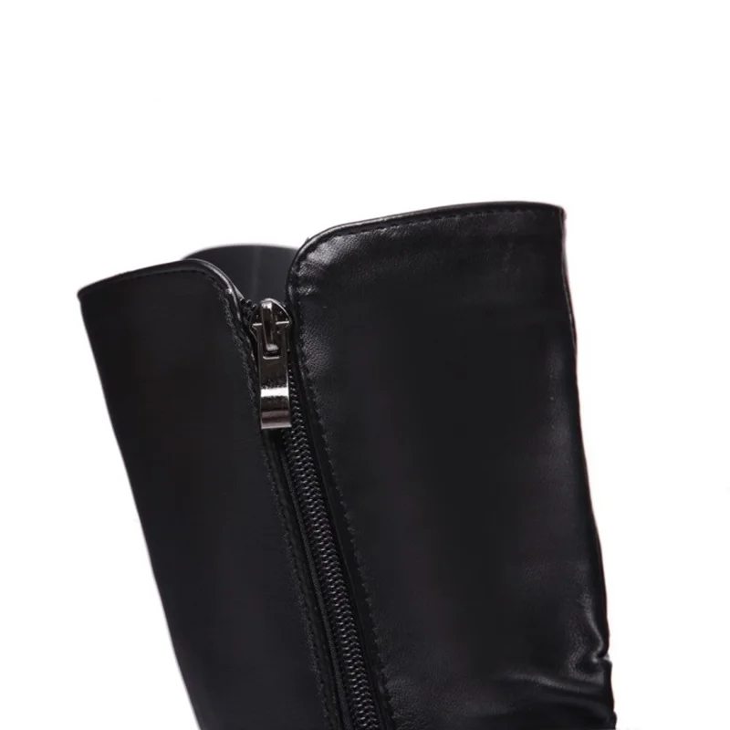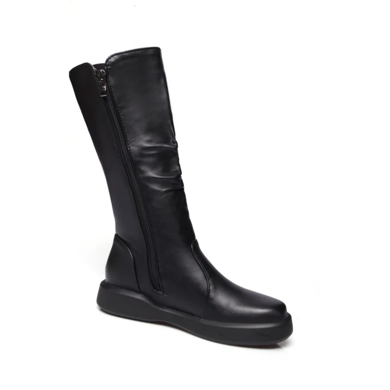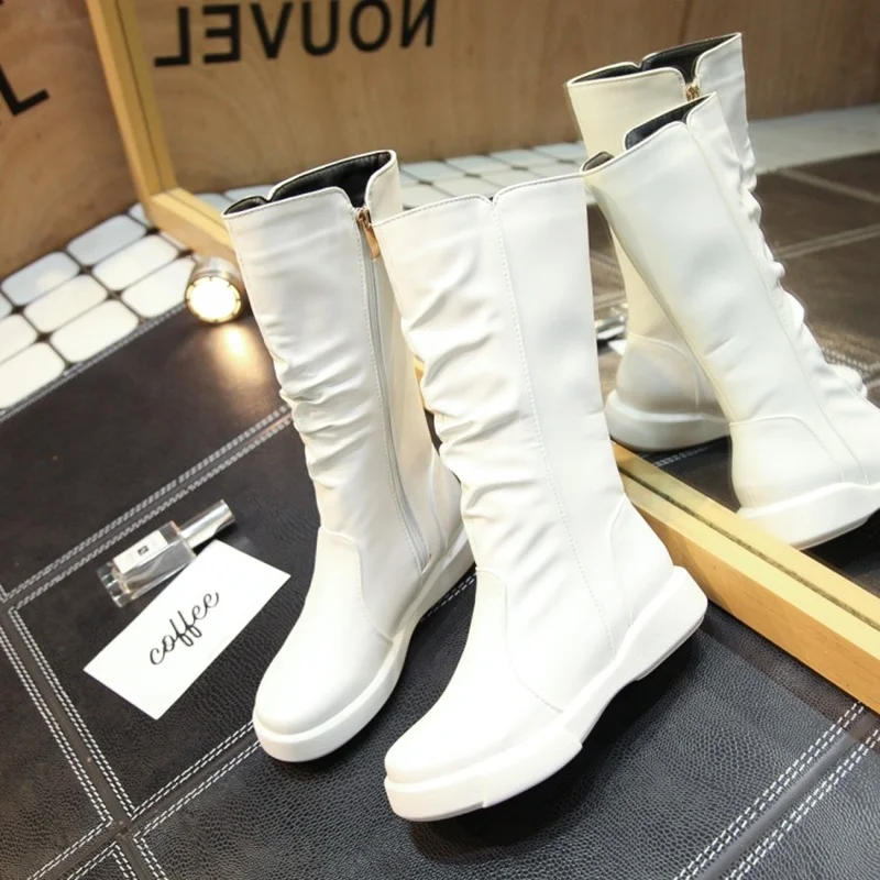 EGONERY plush winter spring mid calf boots woman round toe European zipper black white brand shoes for come women snow boots
