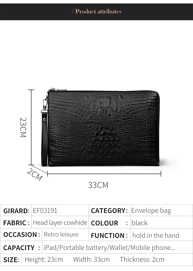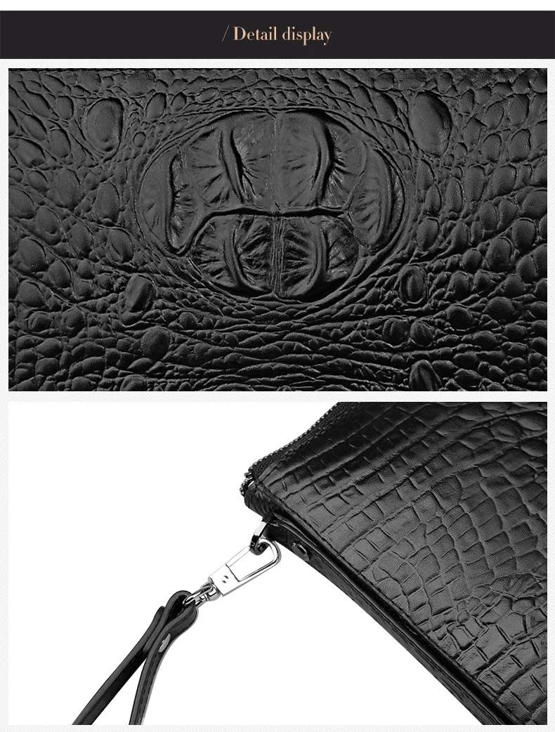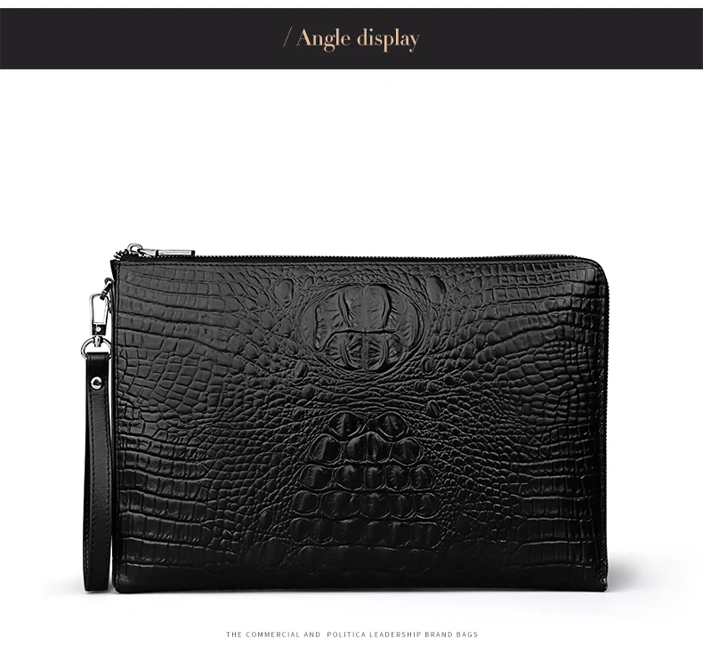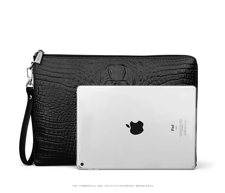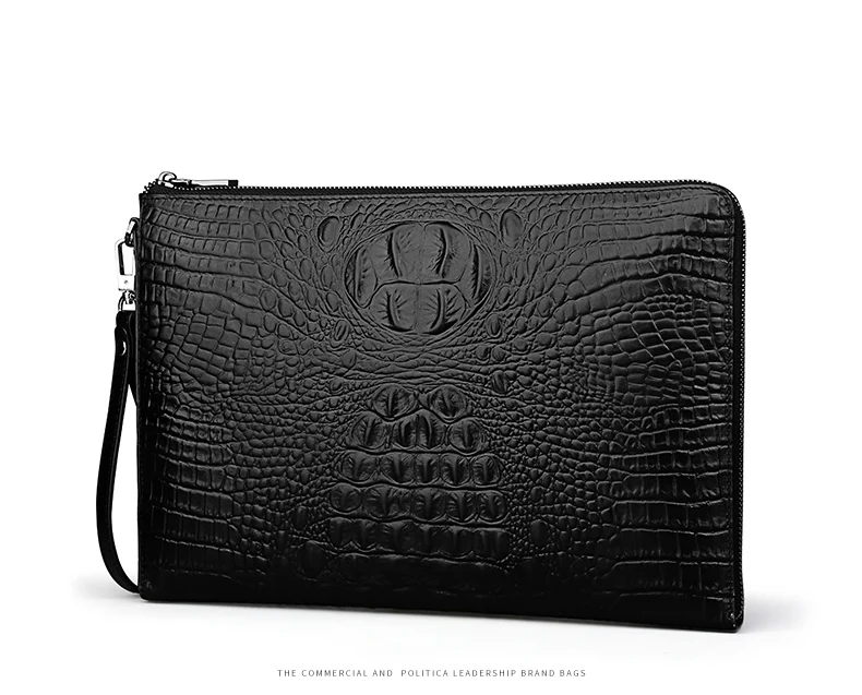 EISIPURI Men’s Handbag File Bag Business A4 Envelope Bag Head Cowhide Bag Casual Crocodile Pattern Handbag Men’s Leather