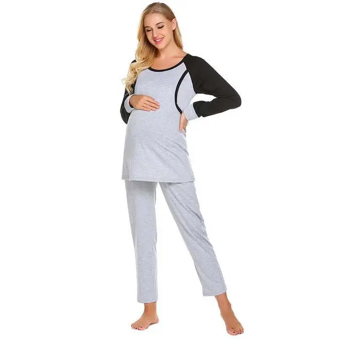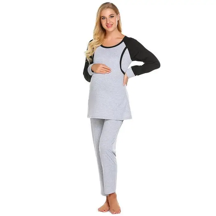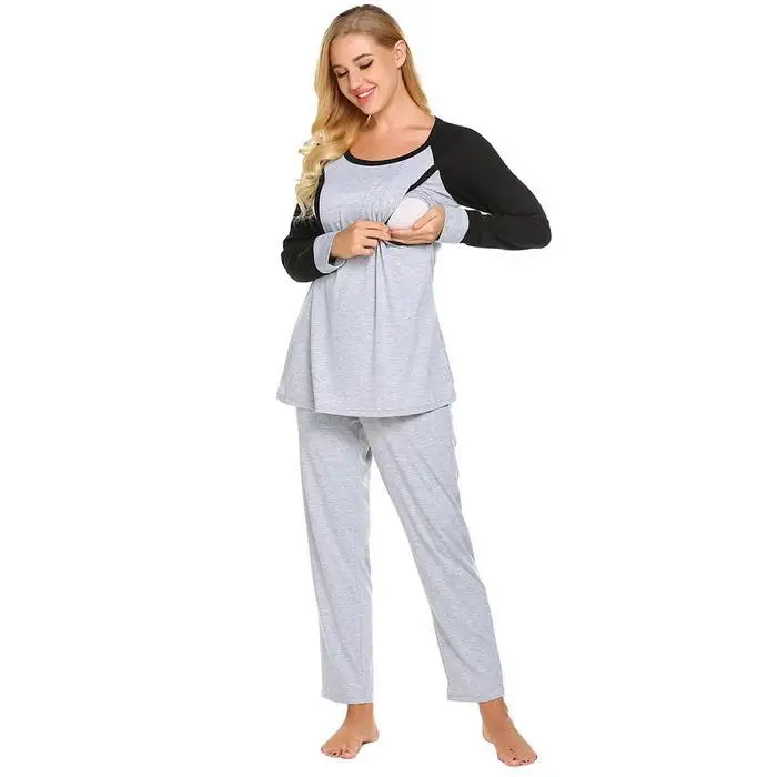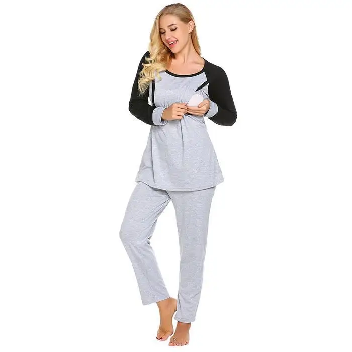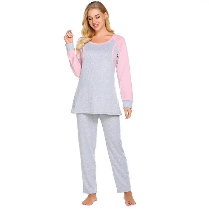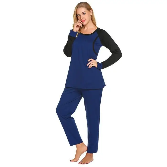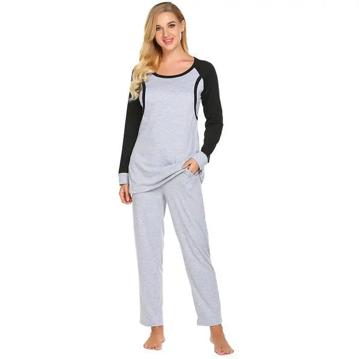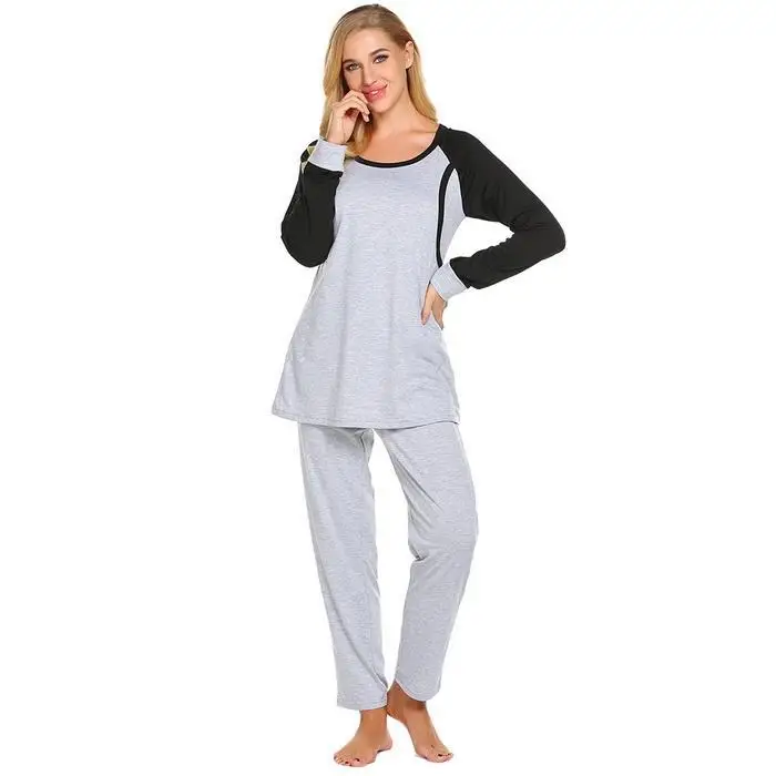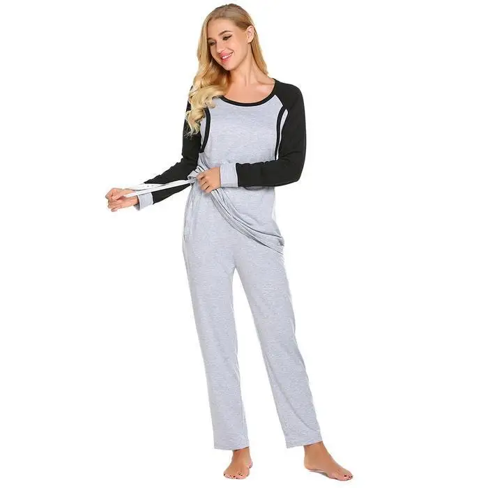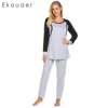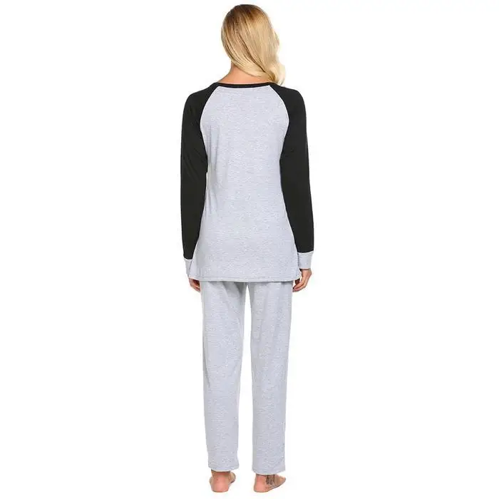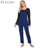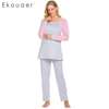Ekouaer Autumn Pajamas Set Women Sleepwear Casual O-Neck Contrast Long Sleeve Tops Long Pants Set Loose Pajama Suit Homewear