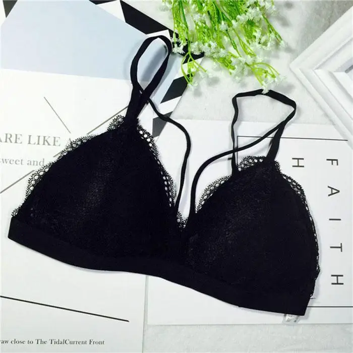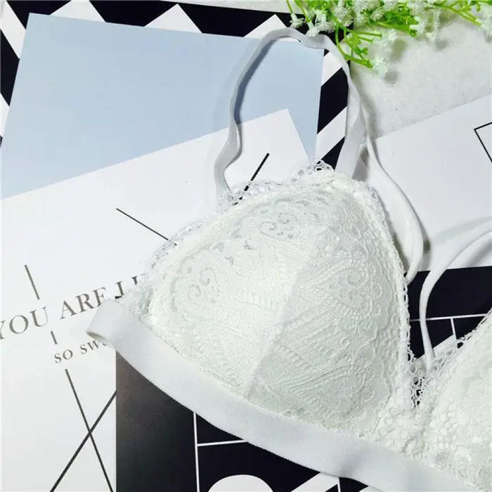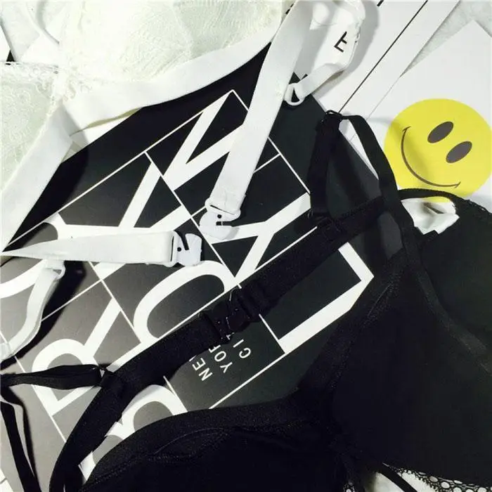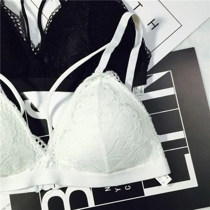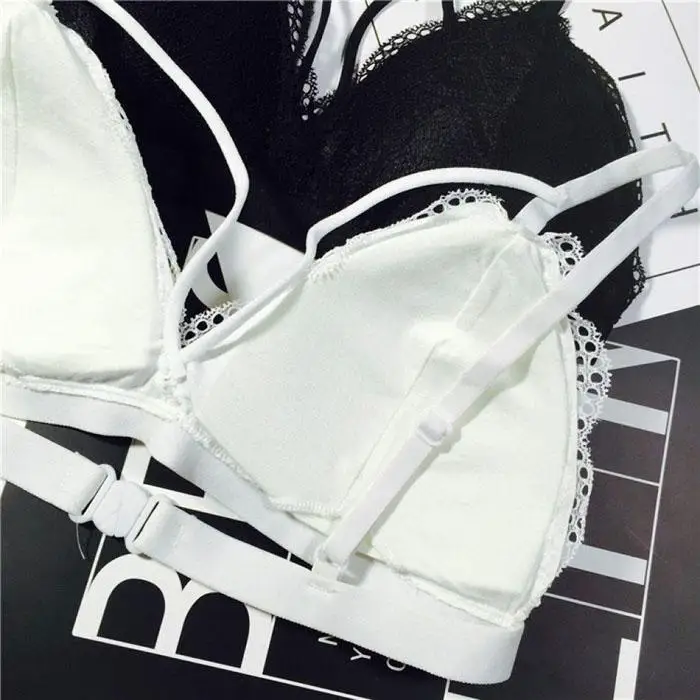 Ekouaer Lingerie Lace Bra Wire Free Bras For Women Sexy Lace Bra Underwear Black White Adjustable Straps Bras Girls Intimates