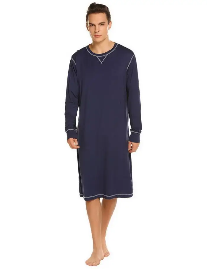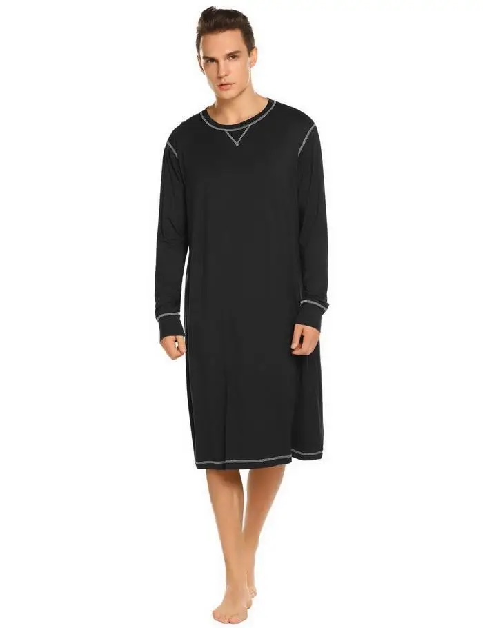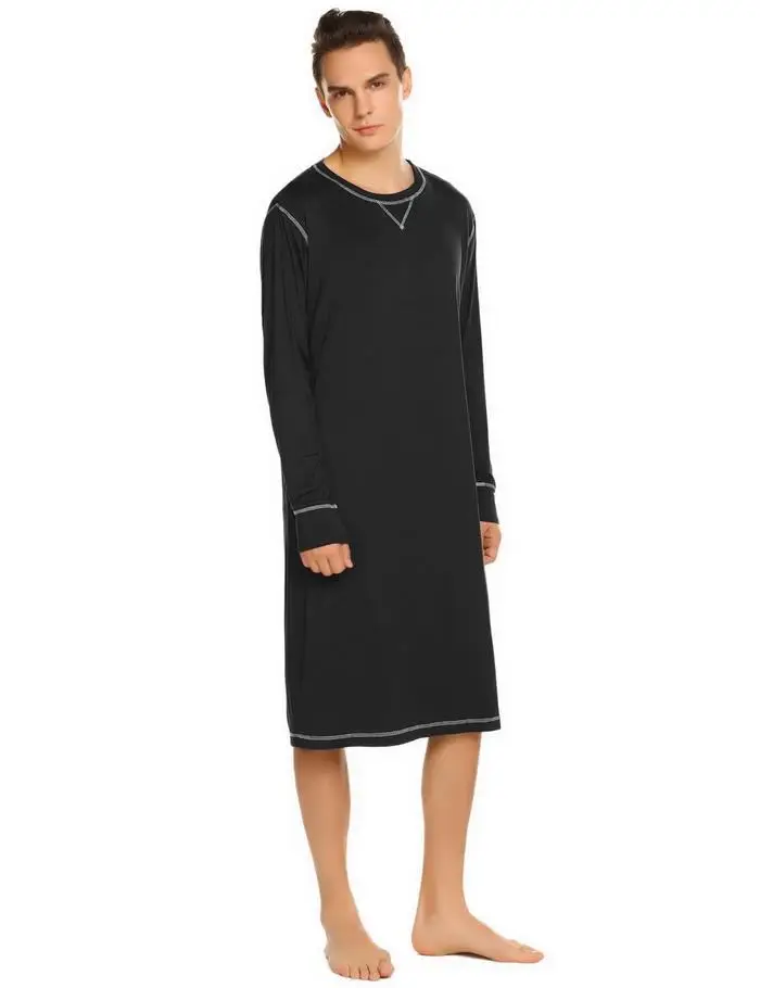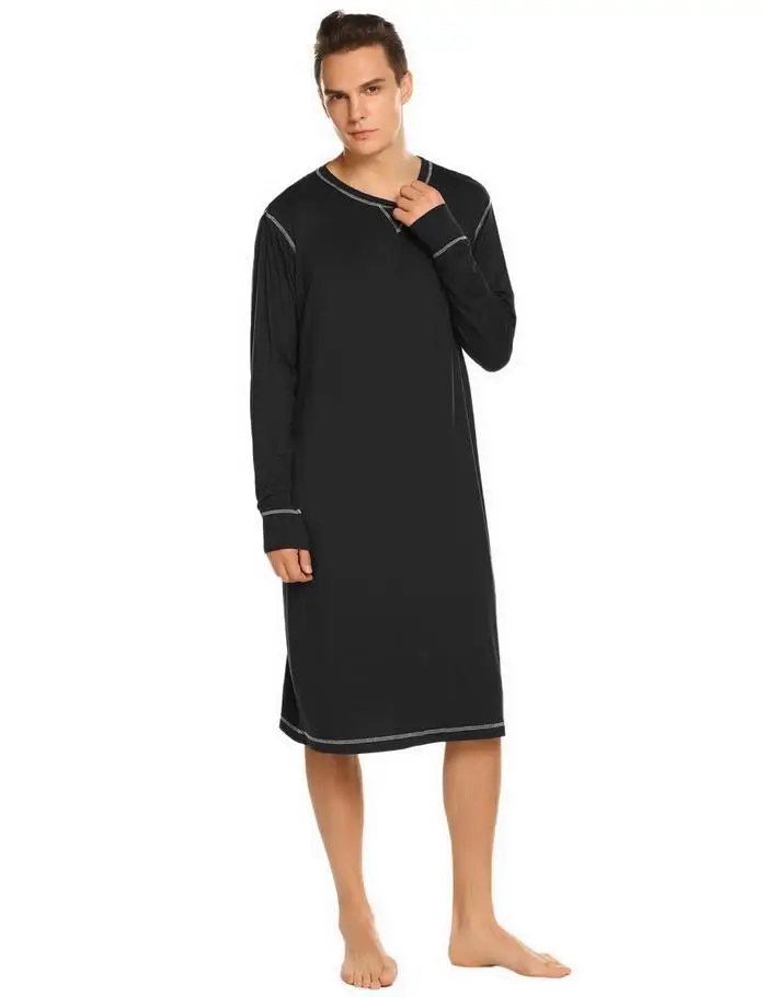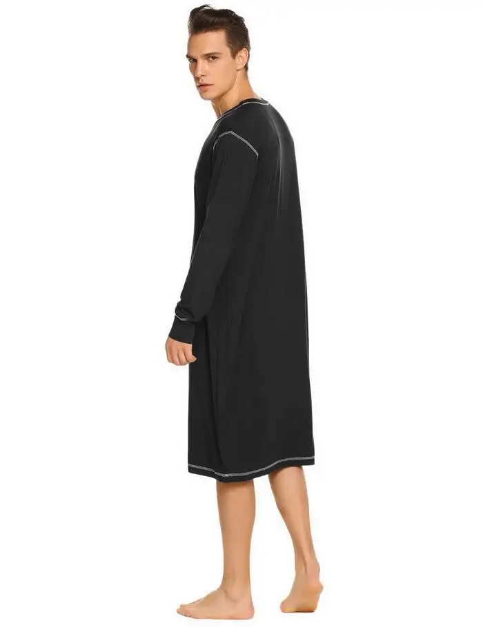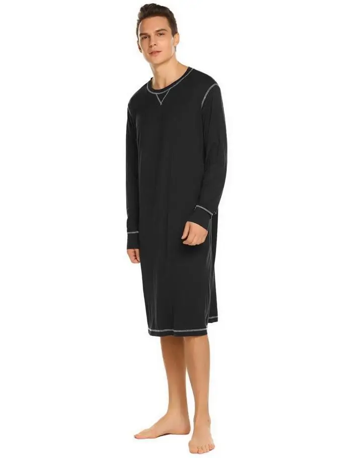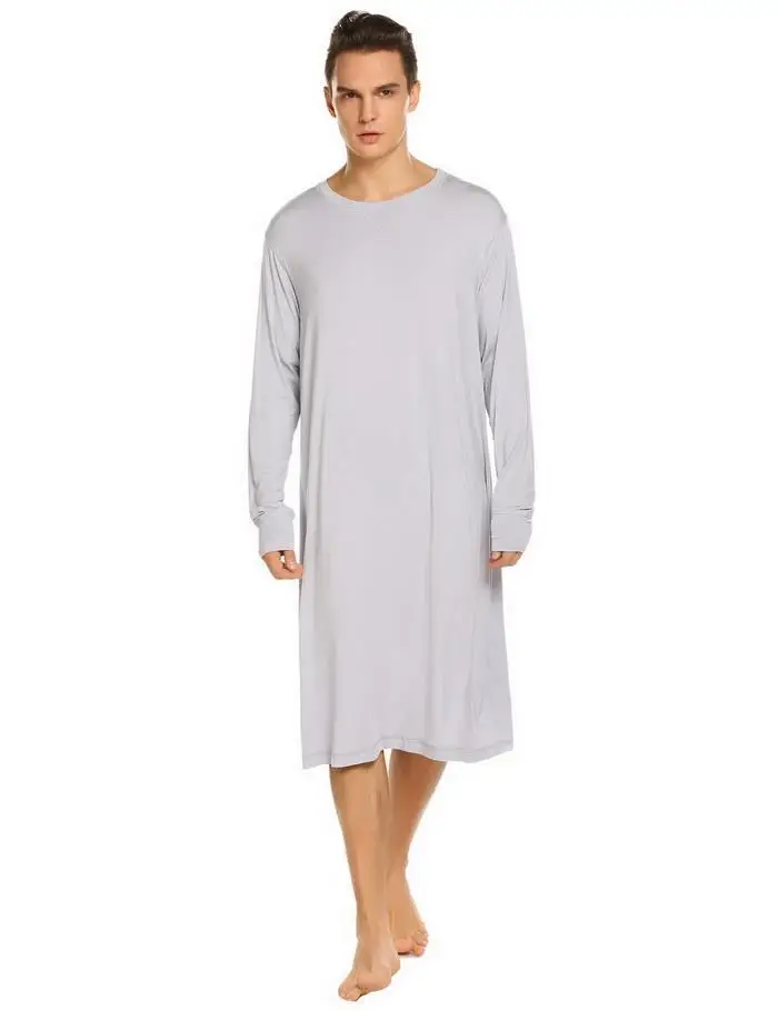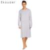 Ekouaer Men Sleepwear Long Nightshirt Long Sleeve Lightweight Loose Casual Sleepshirts Male Comfortable Home Nightwear Plus Size
